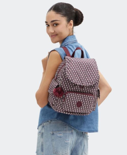 תיק גב קיפלינג סיטי זיפ בורדו קוביות