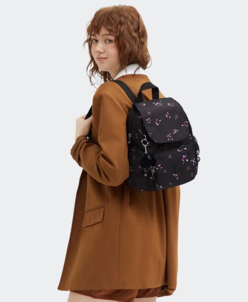 תיק גב קיפלינג סיטי זיפ מיני שחור פרחים