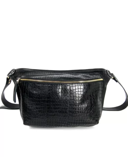 תיק פאוץ אלכסוני נויה עור שחור קשקשים | נאפה