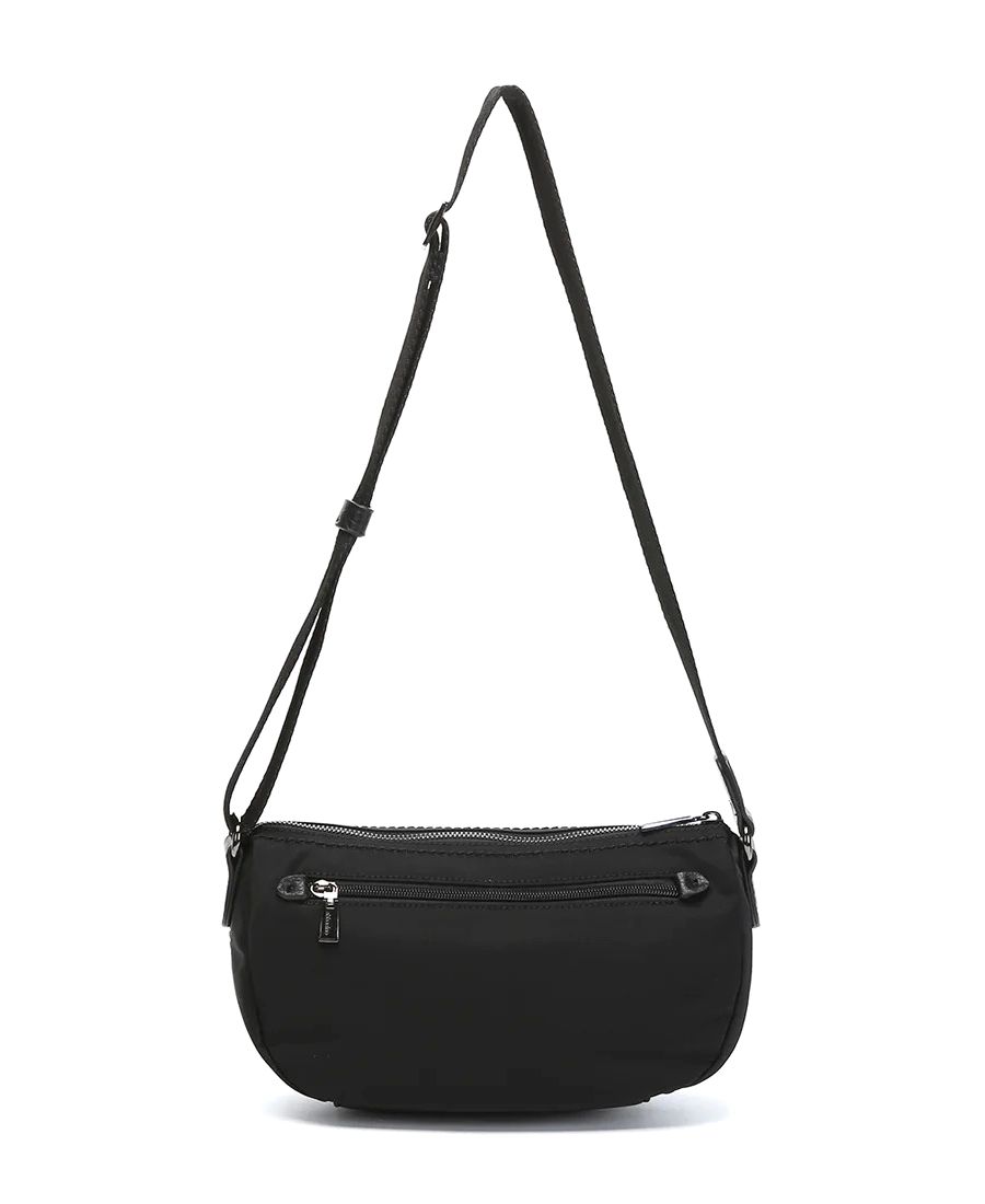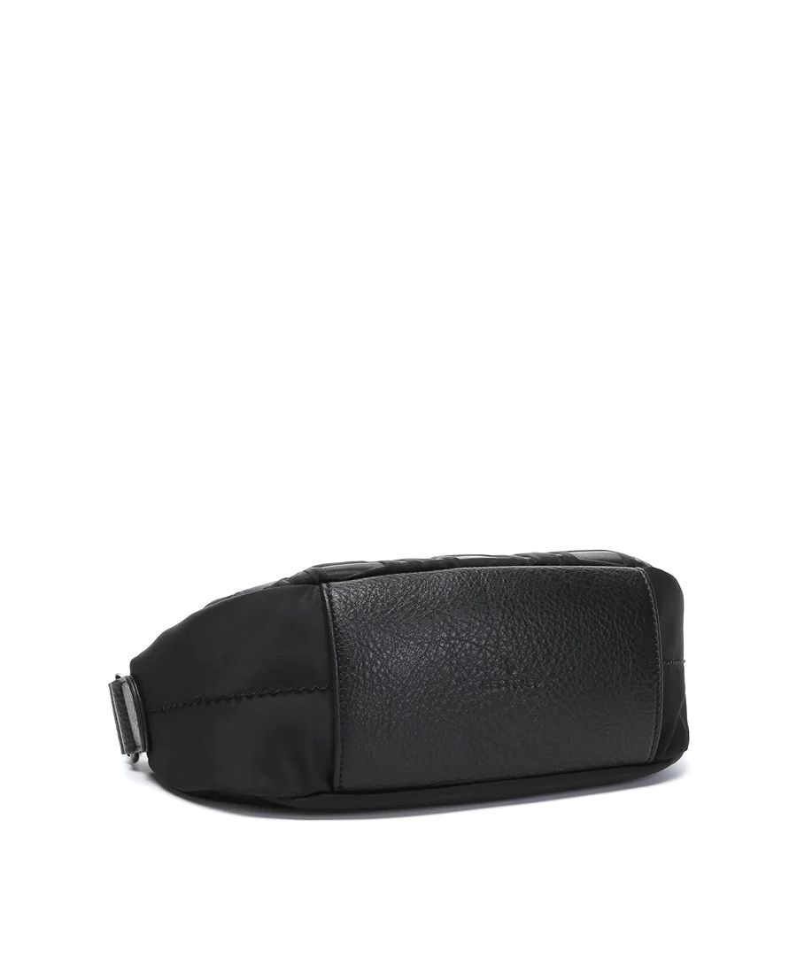 עשוי בד ממוחזר משולב עור בגוון שחור קלאסי.