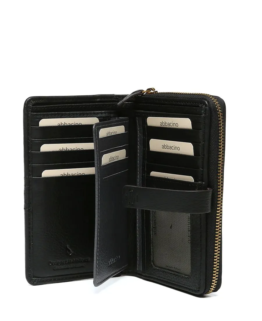 ארנק עור לנשים בינוני שחור | Abbacino