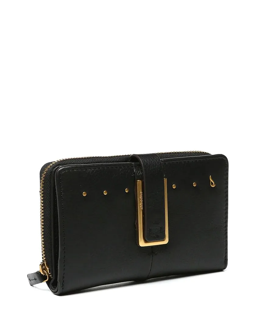 ארנק עור לנשים מעור נאפה שחור בעיצוב יוקרתי עם אביזרי זהב.