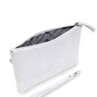 נרתיק עור נאפה קלוע בצבע לבן נקי ואלגנטי.