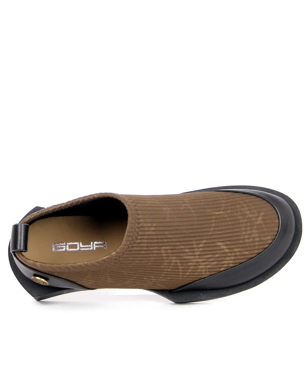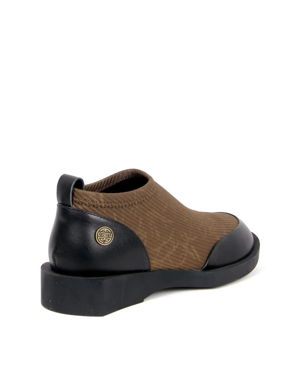 דגם מיוחד עם בד ריפס חום בשילב עור שחור