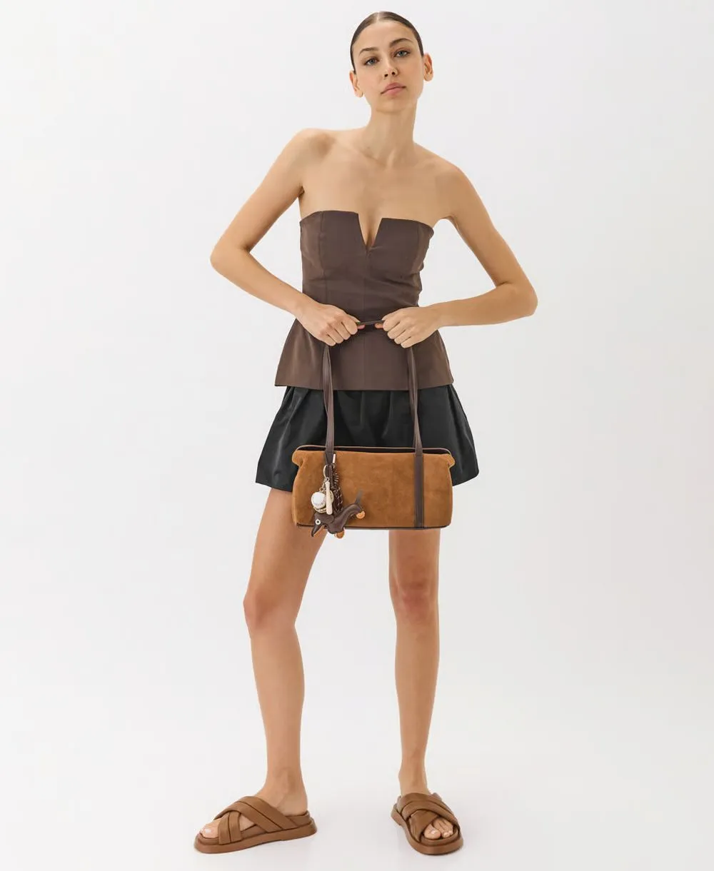 תיק צד לנשים זמש חום בהיר | עמנואל