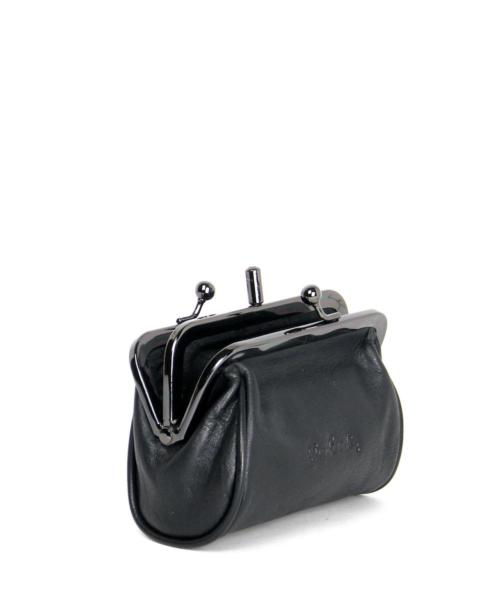 ארנק למטבעות 2 תאים עור נאפה שחור