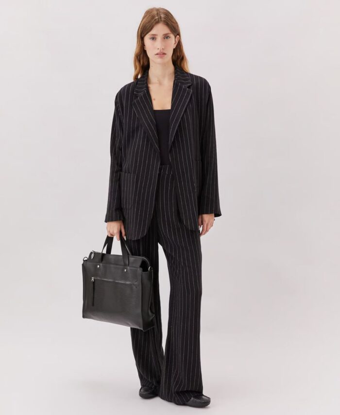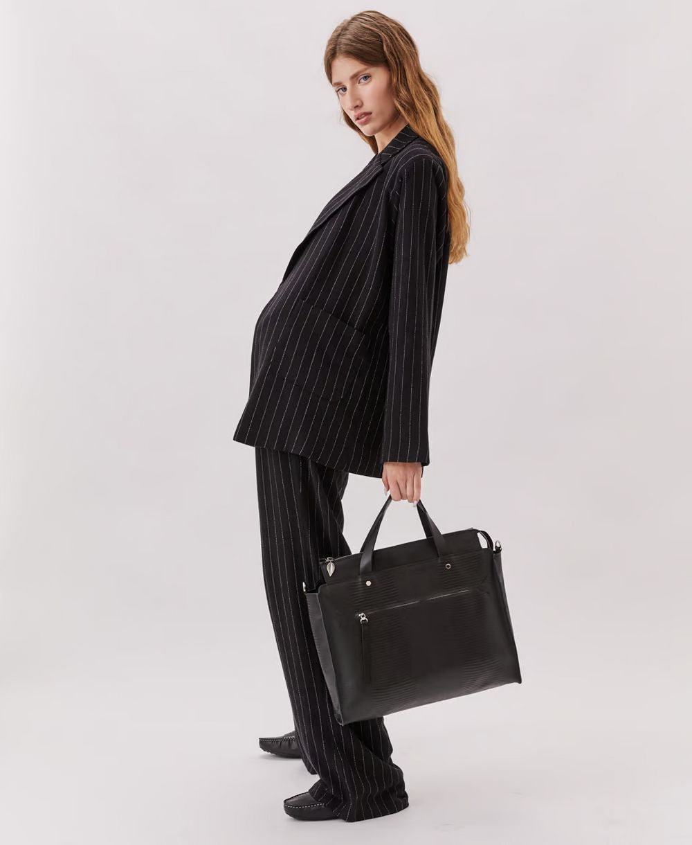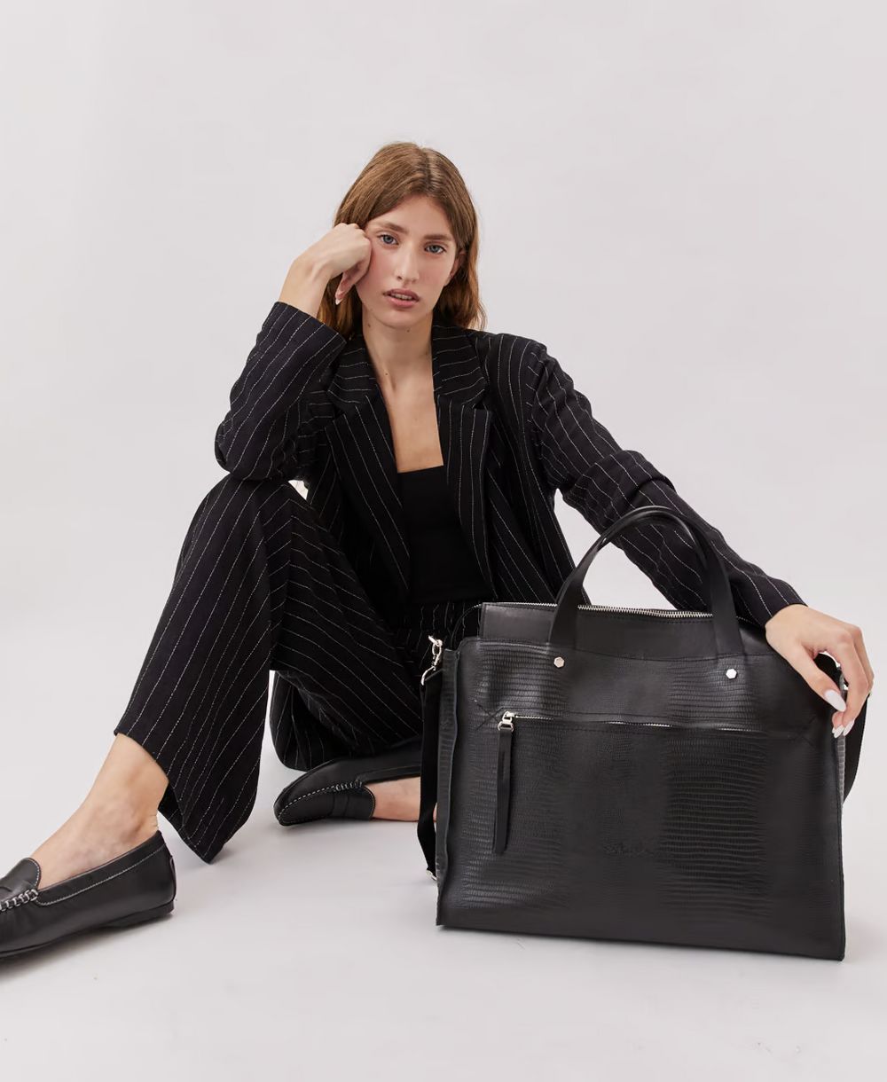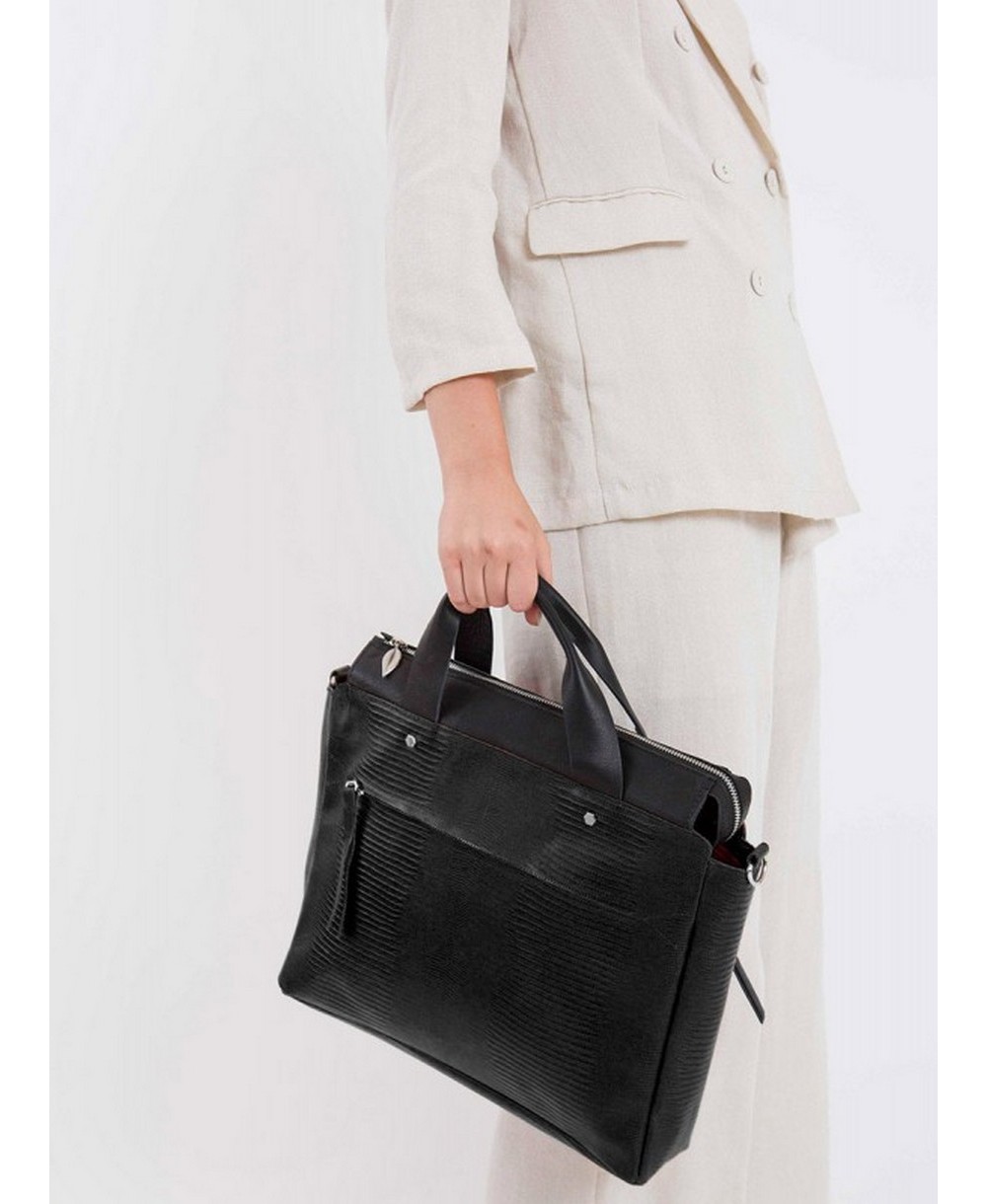 תיק עור למחשב נייד לאישה מעצבת נטע שדה לטאה שחור