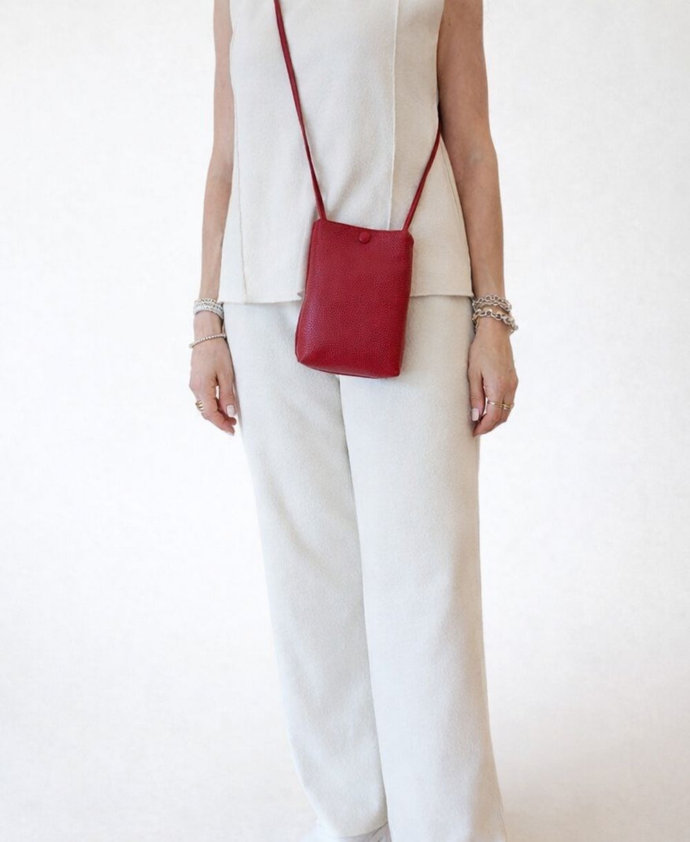 תיק עור לנשים לטלפון נייד ולנטיין אדום | נאפה