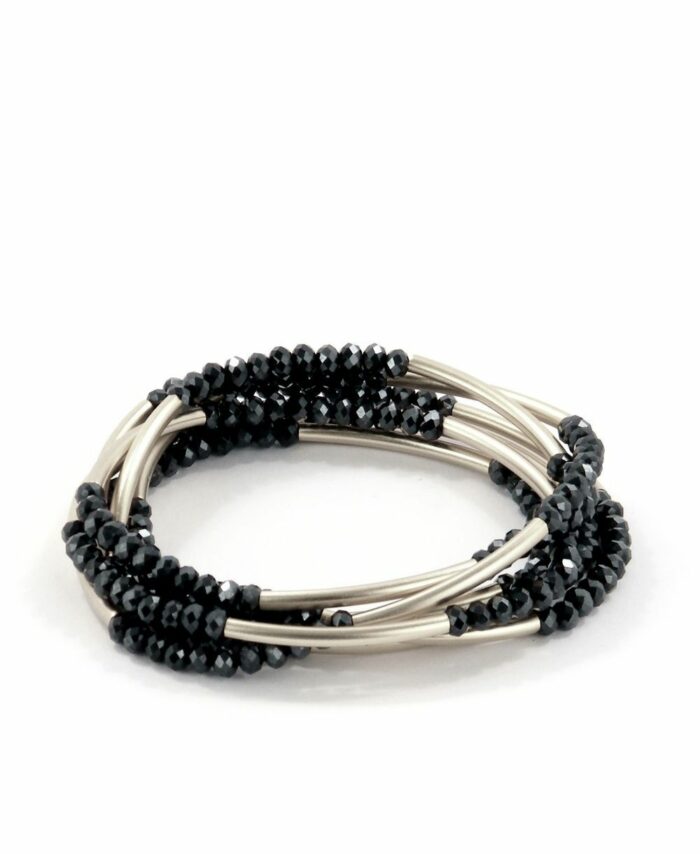 צמיד עשוי חרוזי קריסטל משולב בטיובים מצופים כסף