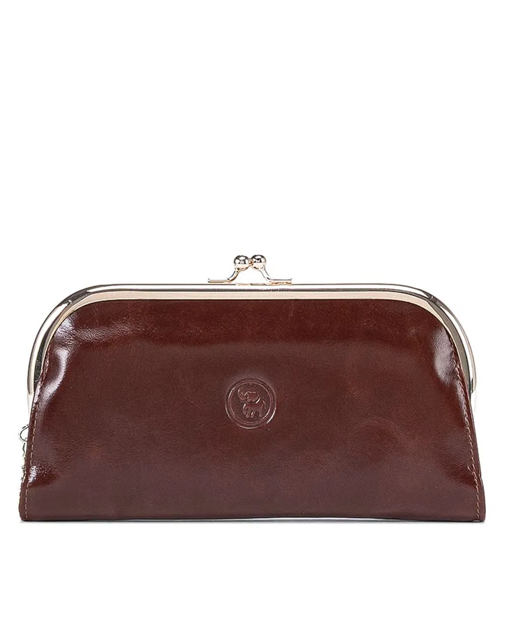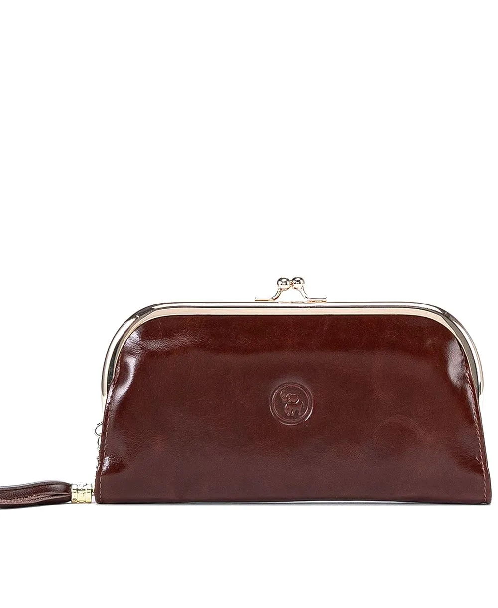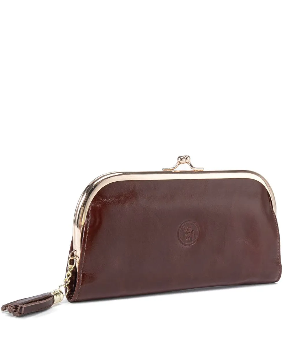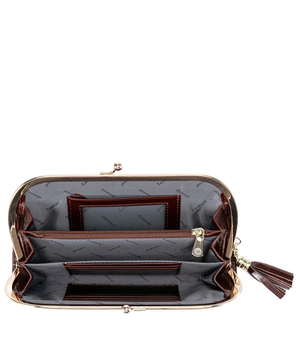 ארנק קלאץ מעור דגם ג'ין חום שברו | עמנואל