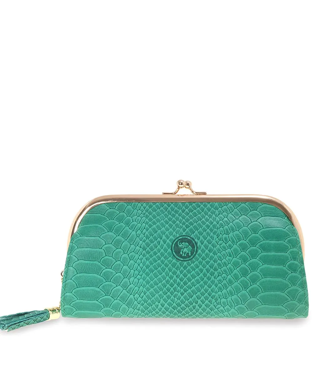 ארנק קלאץ מעור דגם ג'ין נחש ירוק