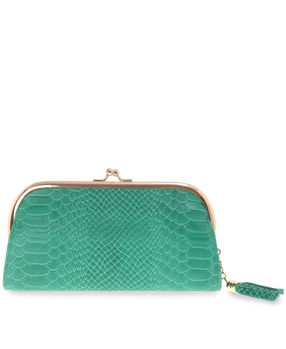 ארנק קלאץ מעור דגם ג'ין ירוק | עמנואל