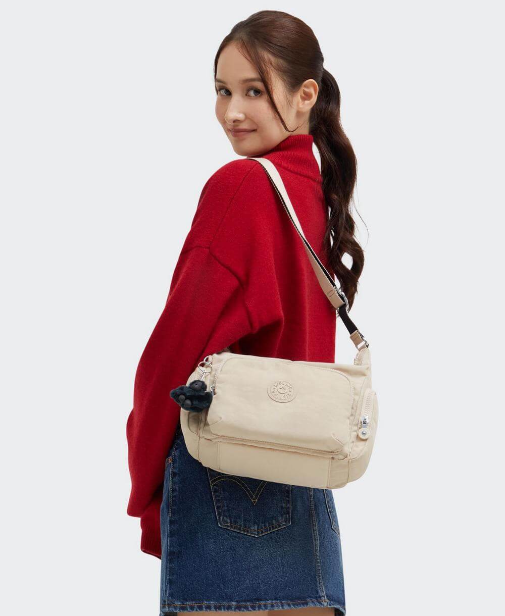 תיק צד אלכסון לנשים קיפלינג גאב בינוני בז'