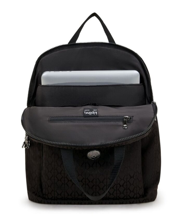 תיק גב למחשב נייד לנשים Kipling שחור טקסטורה