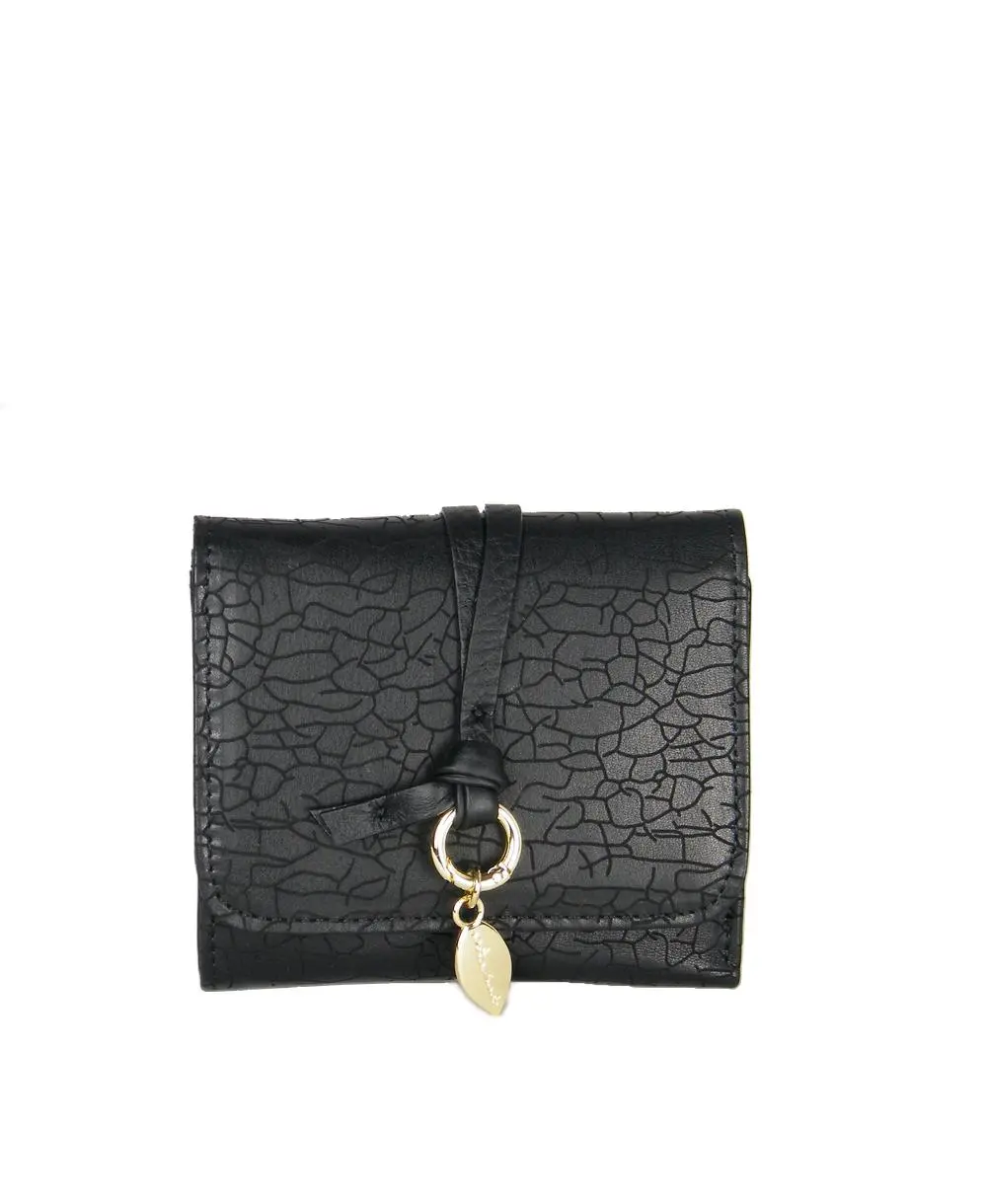 ארנק קטן לנשים עלה שחור סדקים | נטע שדה