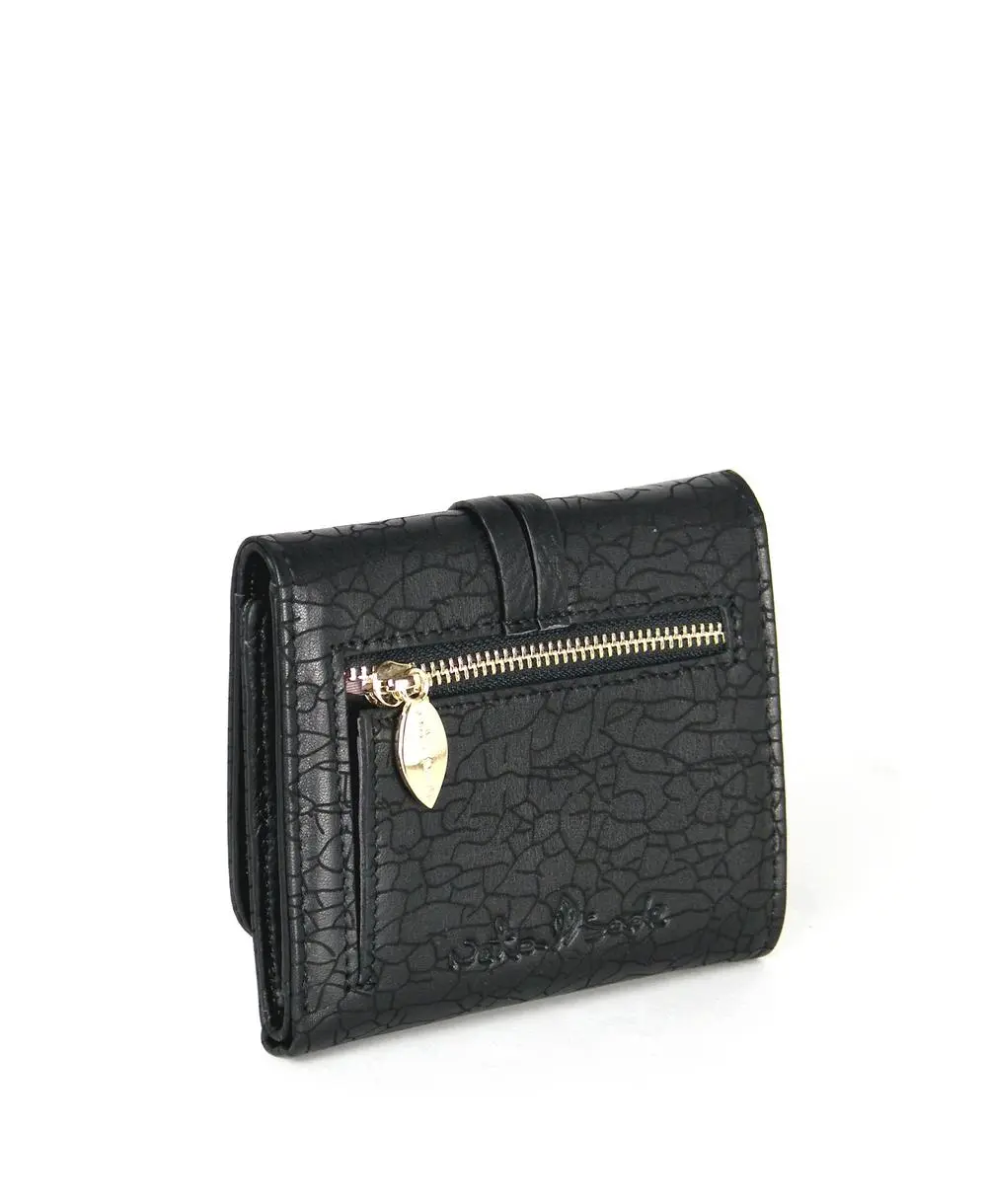 ארנק מעור נאפה שחור סדקים לנשים נטע שדה עלה