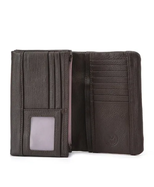 ארנק מעור לנשים אקורדיון חום פסים | נטע שדה