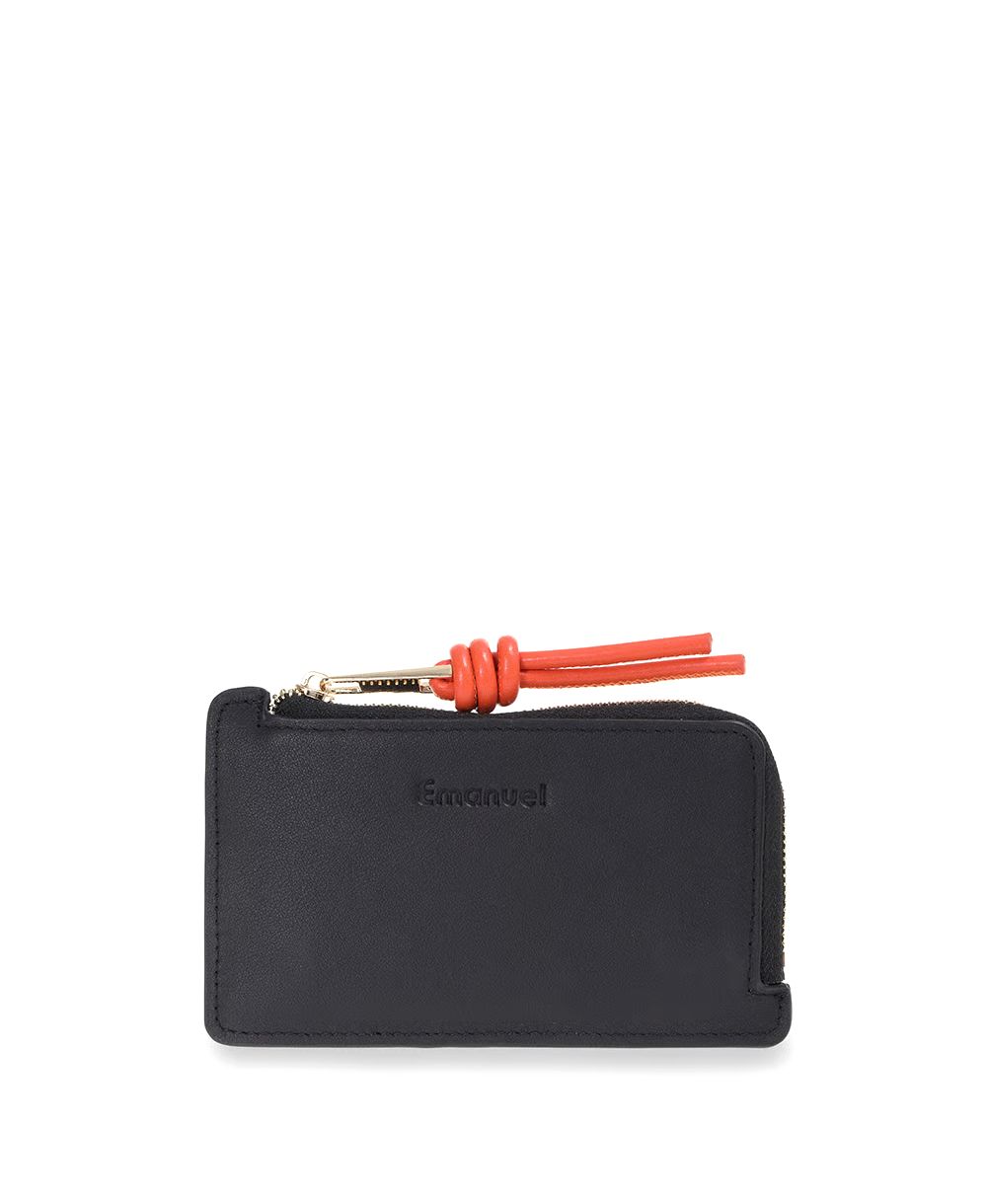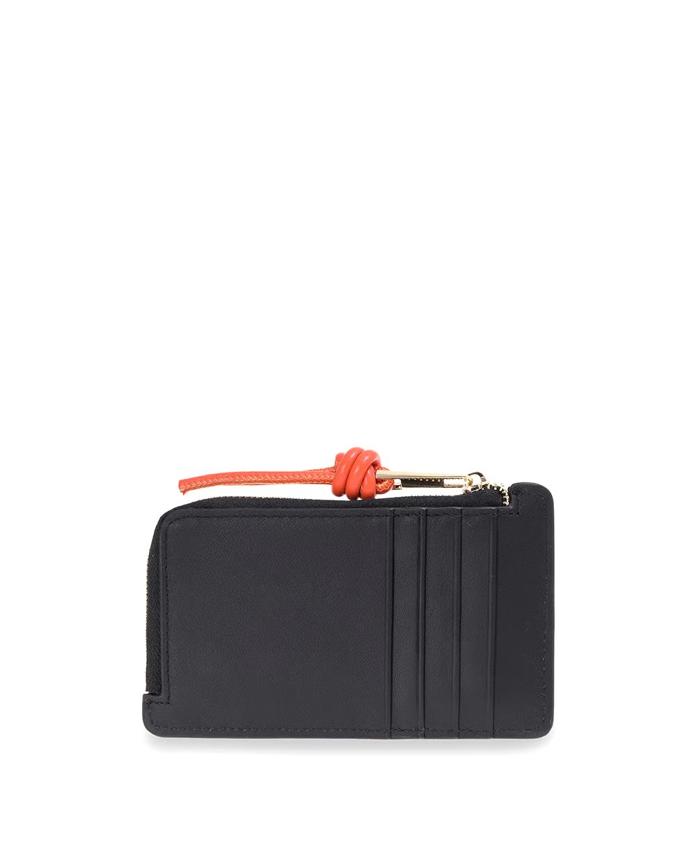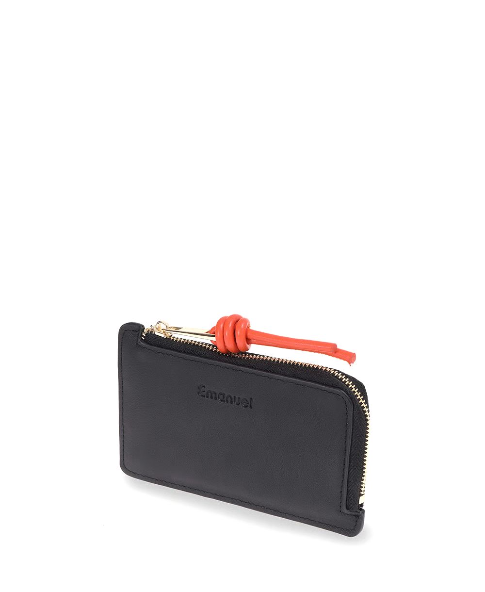 ארנק עור קטן לכרטיסים שחור רוכסן כתום
