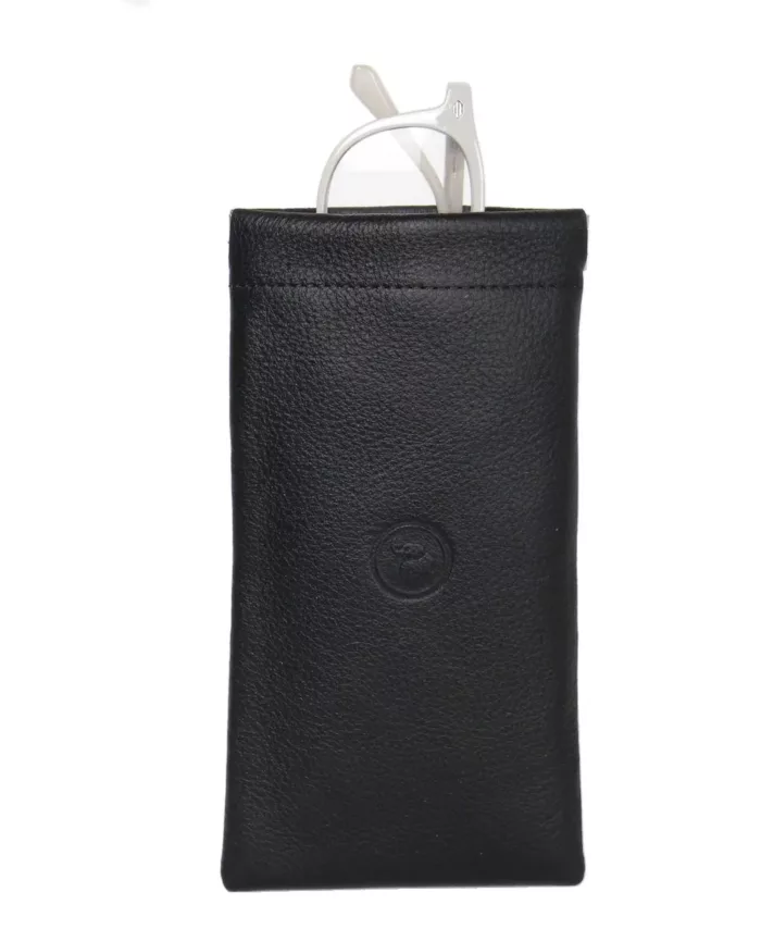 נרתיק משקפיים אלגנטי עשוי עור נאפה שחור, בעיצוב נקי ומוקפד.