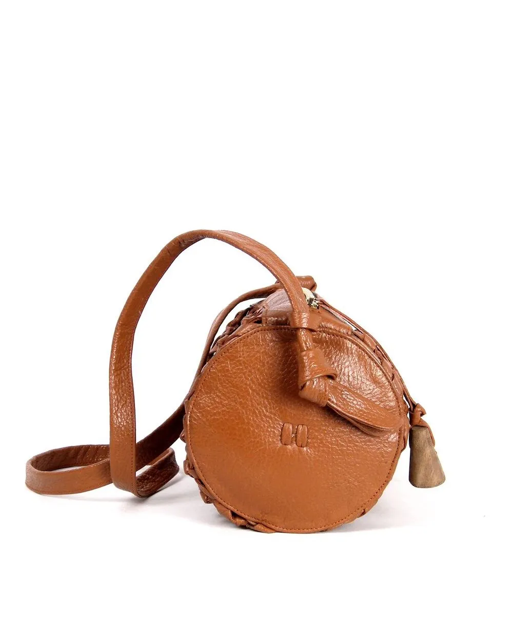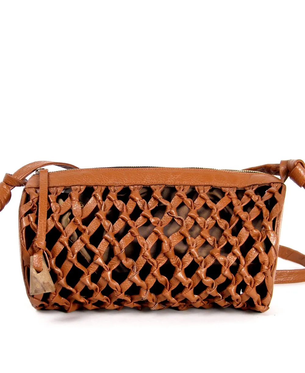 גוף התיק עשוי עור גוון טרקוטה קלוע בעבודת יד באומנות מוקפדת.