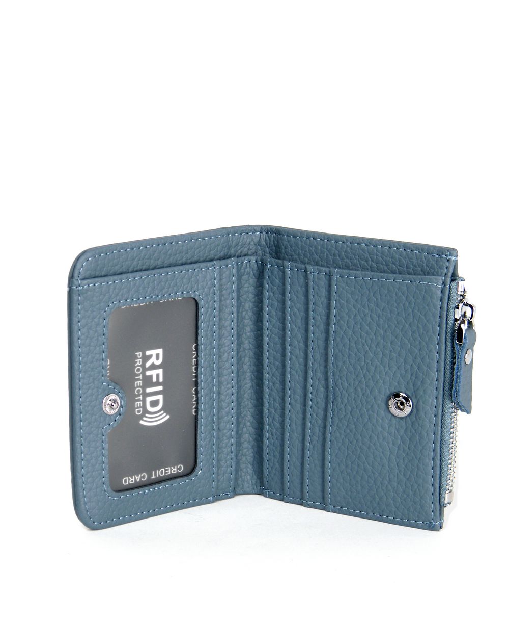 ארנק עור נאפה בגוון כחול ג’ינס.