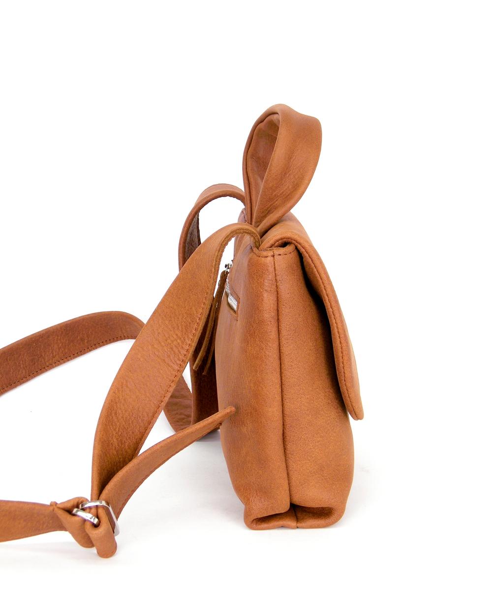 תיק מיקונוס לנשים מעור נאפה בגוון חום דיזל.