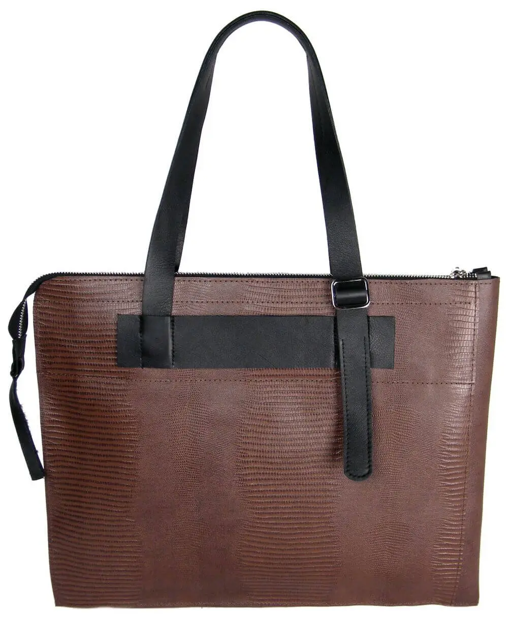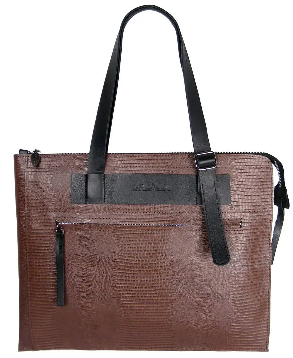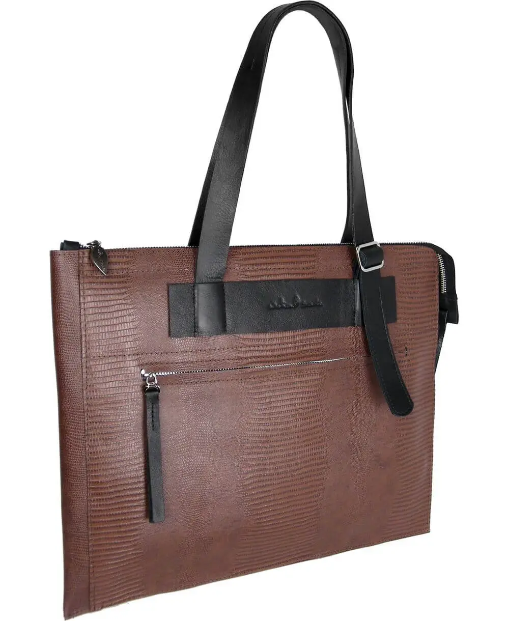 תיק למחשב נייד לנשים מעצבת נטע שדה עור חום לטאה