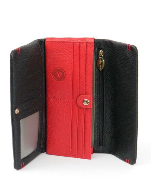 ארנק עור קקדו גדול שחור אדום | נטע שדה