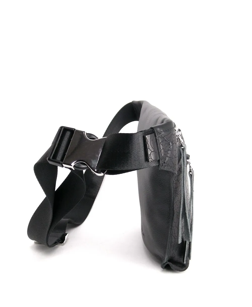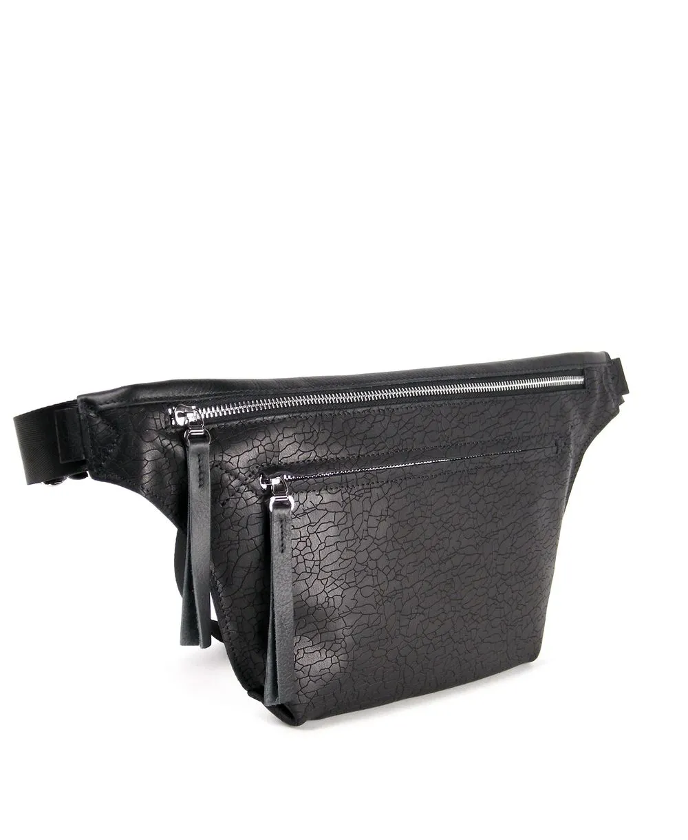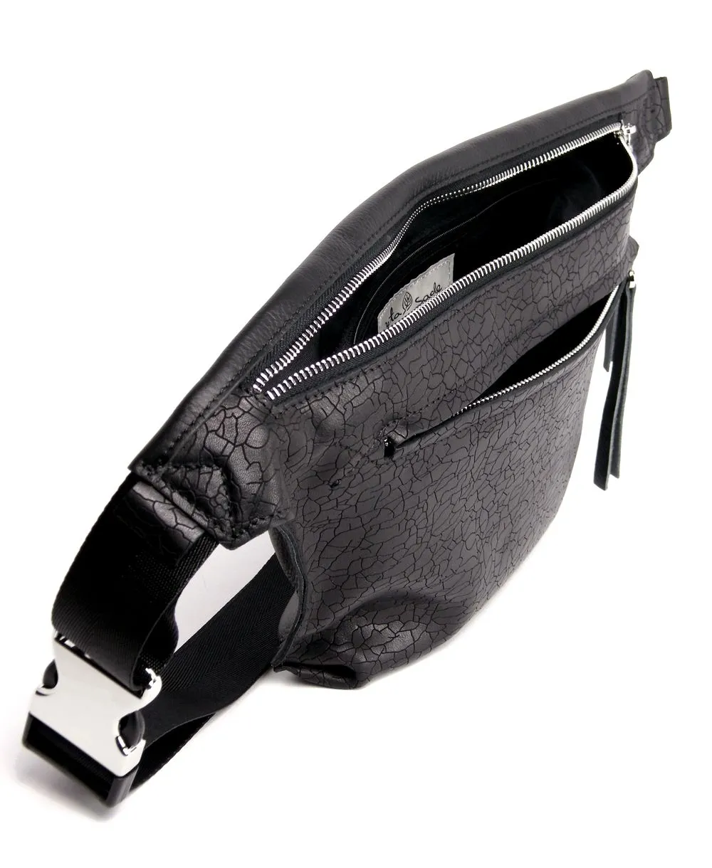תיק פאוץ' לנשים – נטע שדה דגם אנה גדול – שחור סדקים
