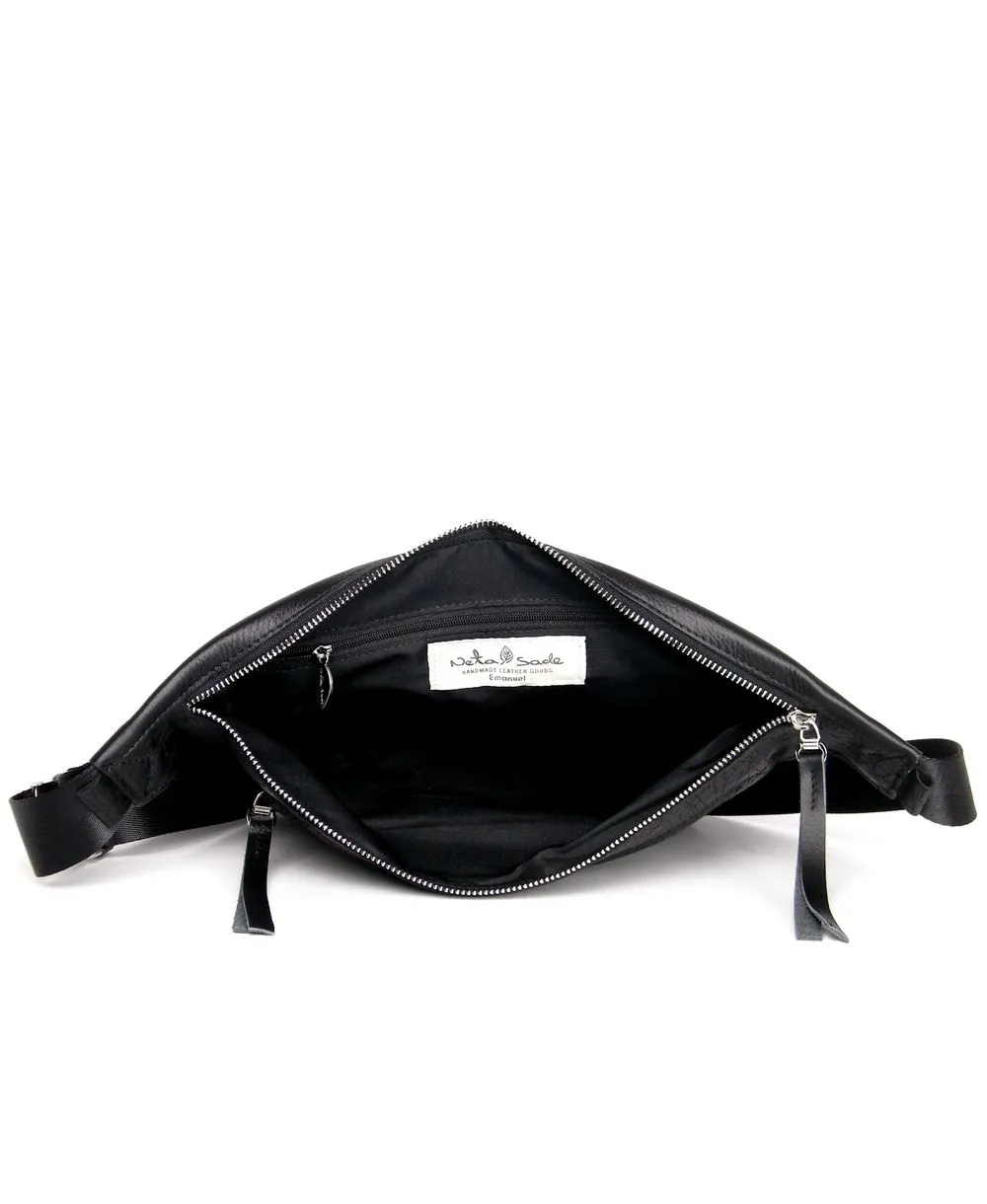 תיק פאוץ' אנה גדול שחור סדקים | נטע שדה