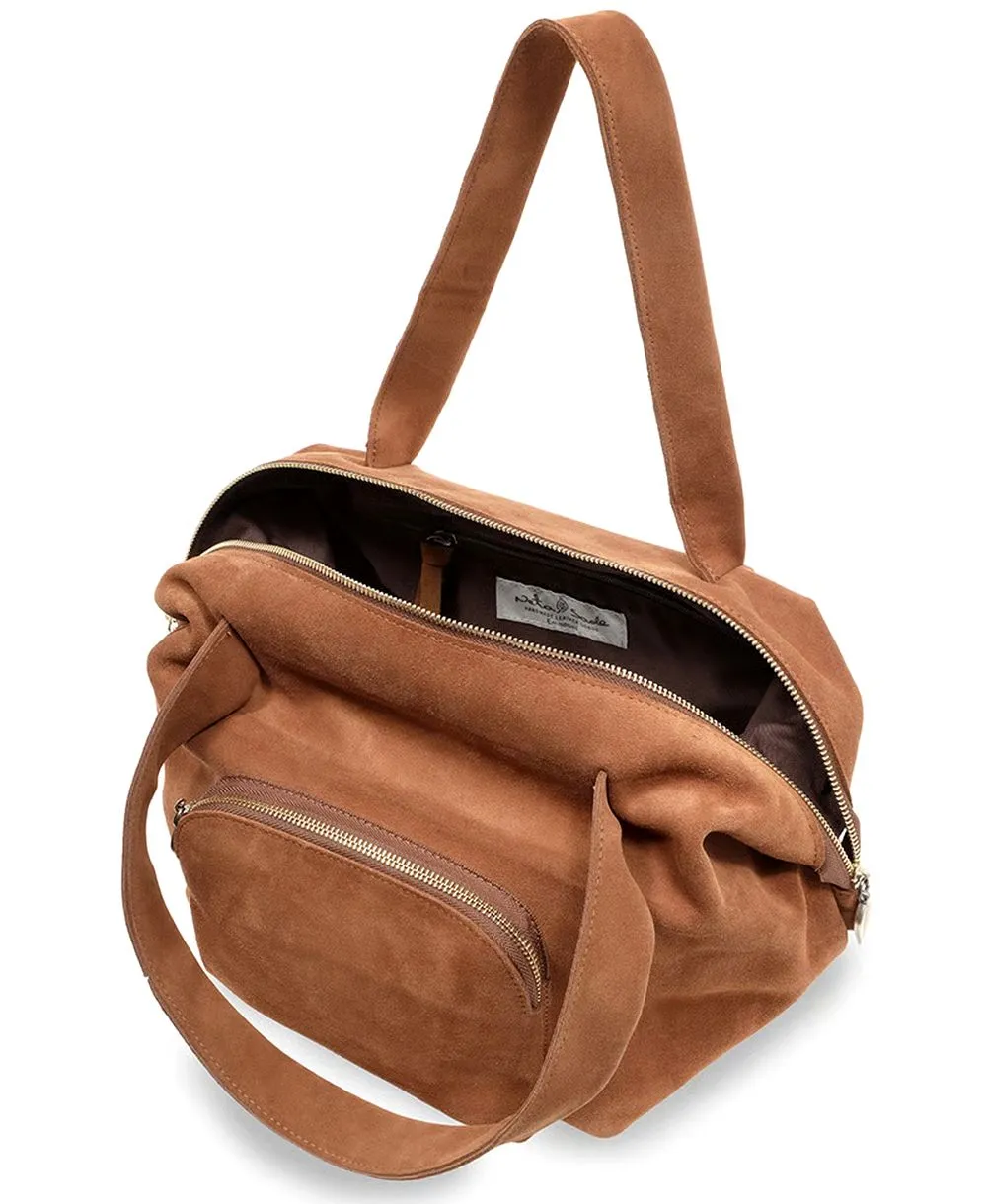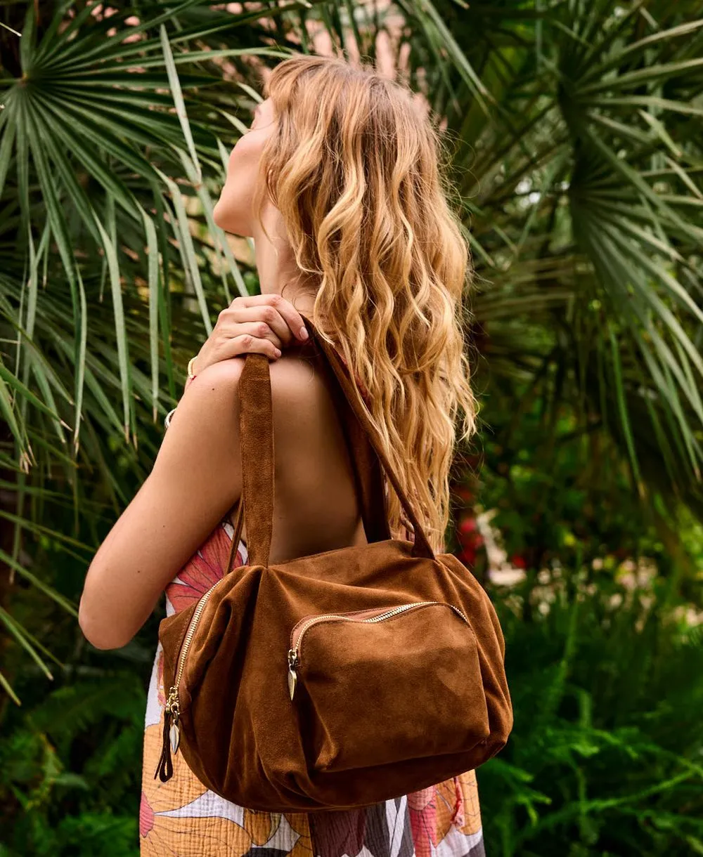 תיק לנשים זמש חום דגם ערבה | נטע שדה