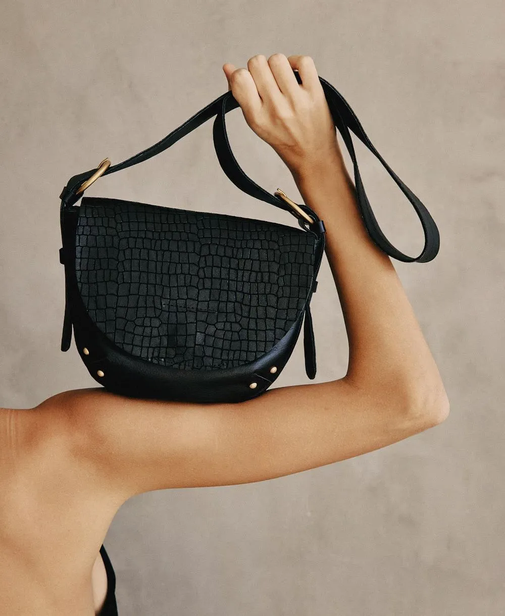 תיק צד מעור לנשים גומא שחור | נטע שדה