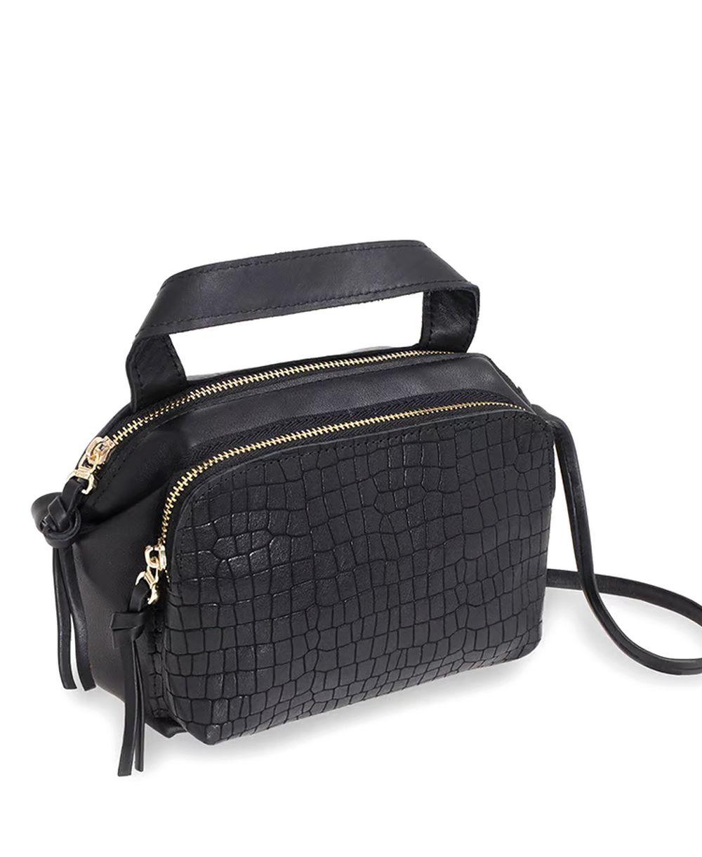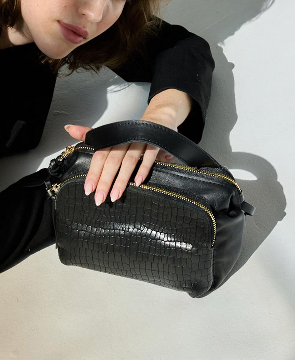 תיק צד לנשים בעיצוב נטע שדה דגם חבצלת | עור שחור נאפה בטקסטורת ריבועים