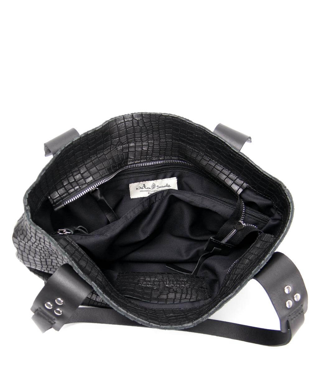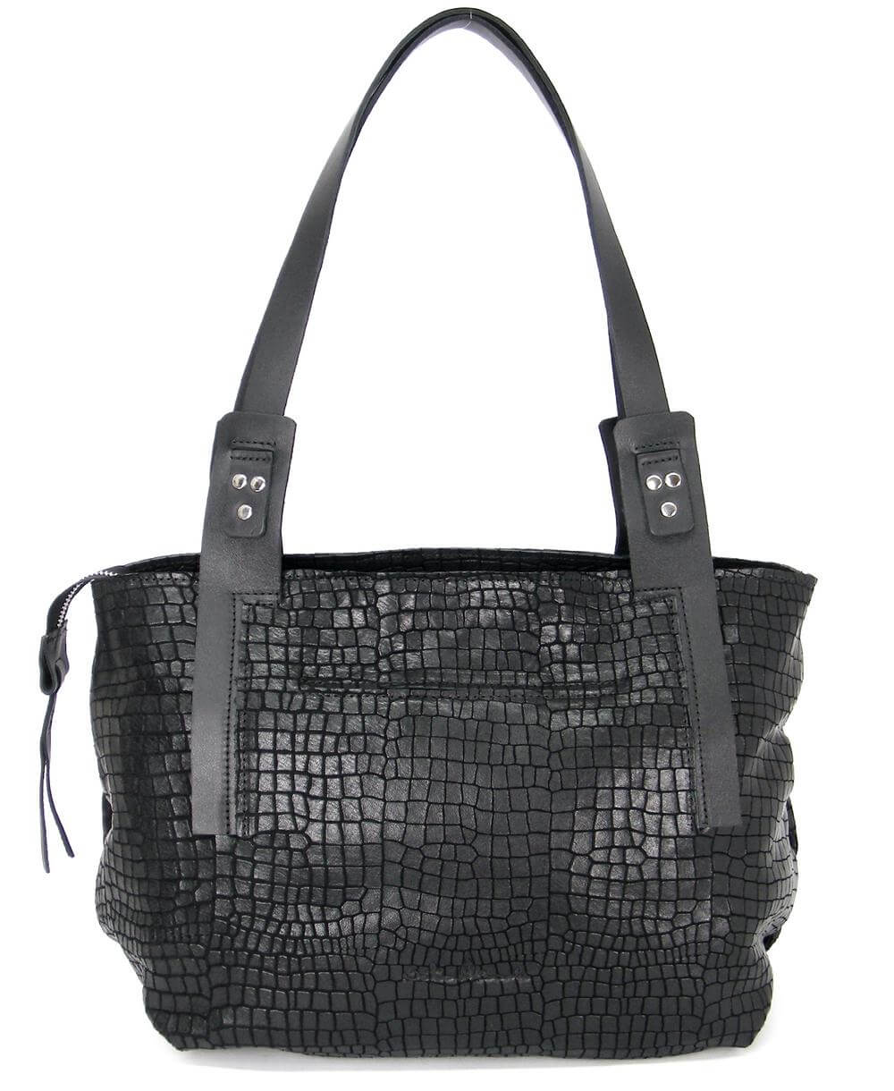 תיק צד לנשים מעור מעצבת נטע שדה דגם קוסט שחור ריבועים