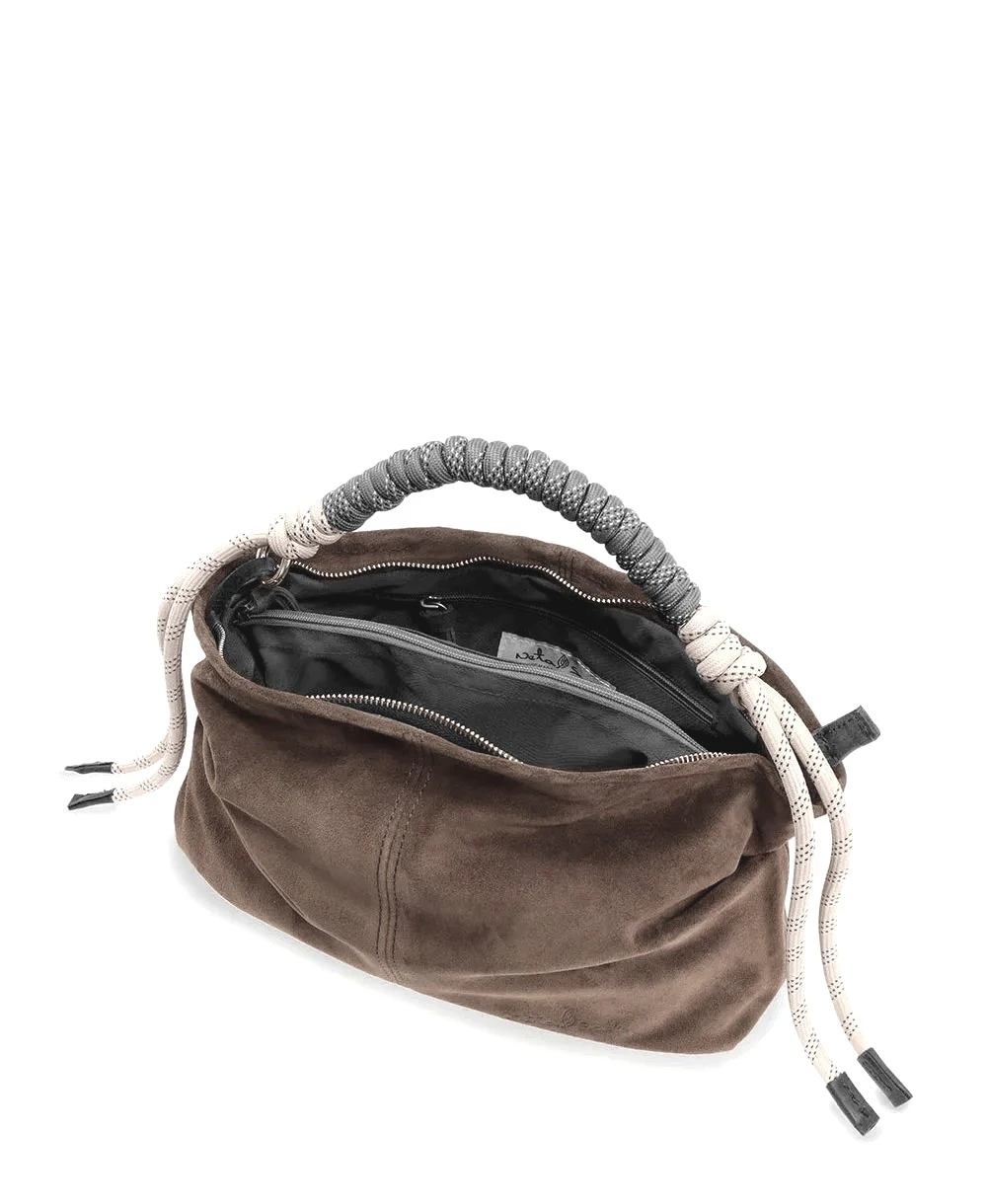 תיק צד לנשים מעור זמש בודהה חום אפרפר | נטע שדה