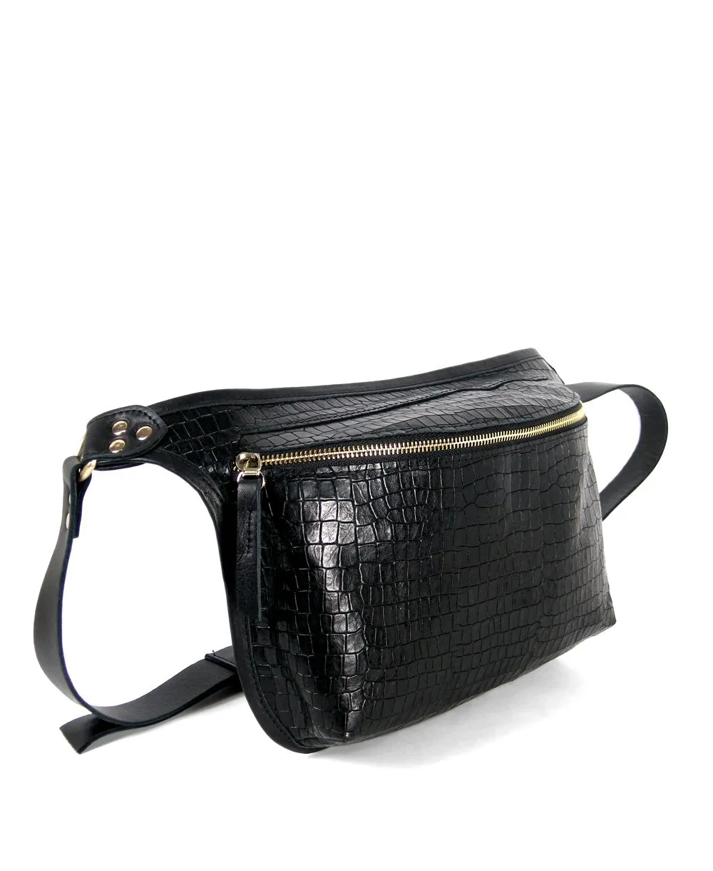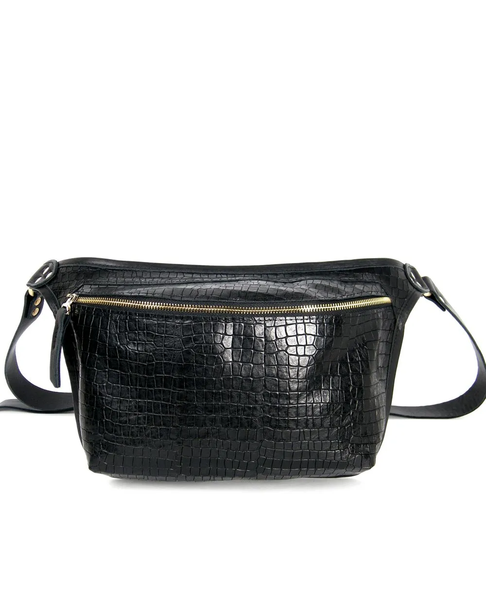 תיק פאוץ' לנשים דגם "אירוס" מעור נאפה שחור בטקסטורת ריבועים | נטע שדה