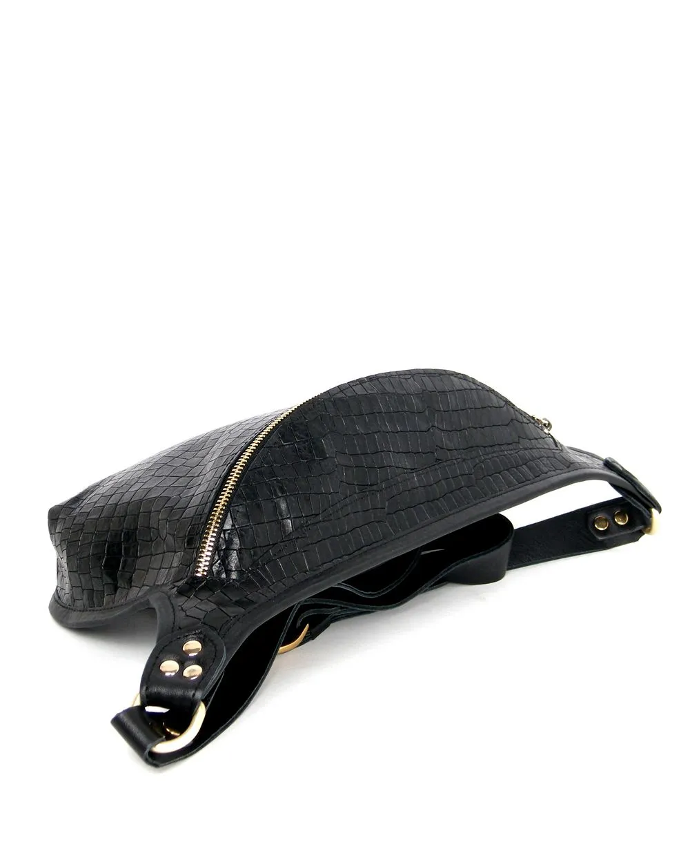 עשוי מעור נאפה שחור בגימור טקסטורה של ריבועים,