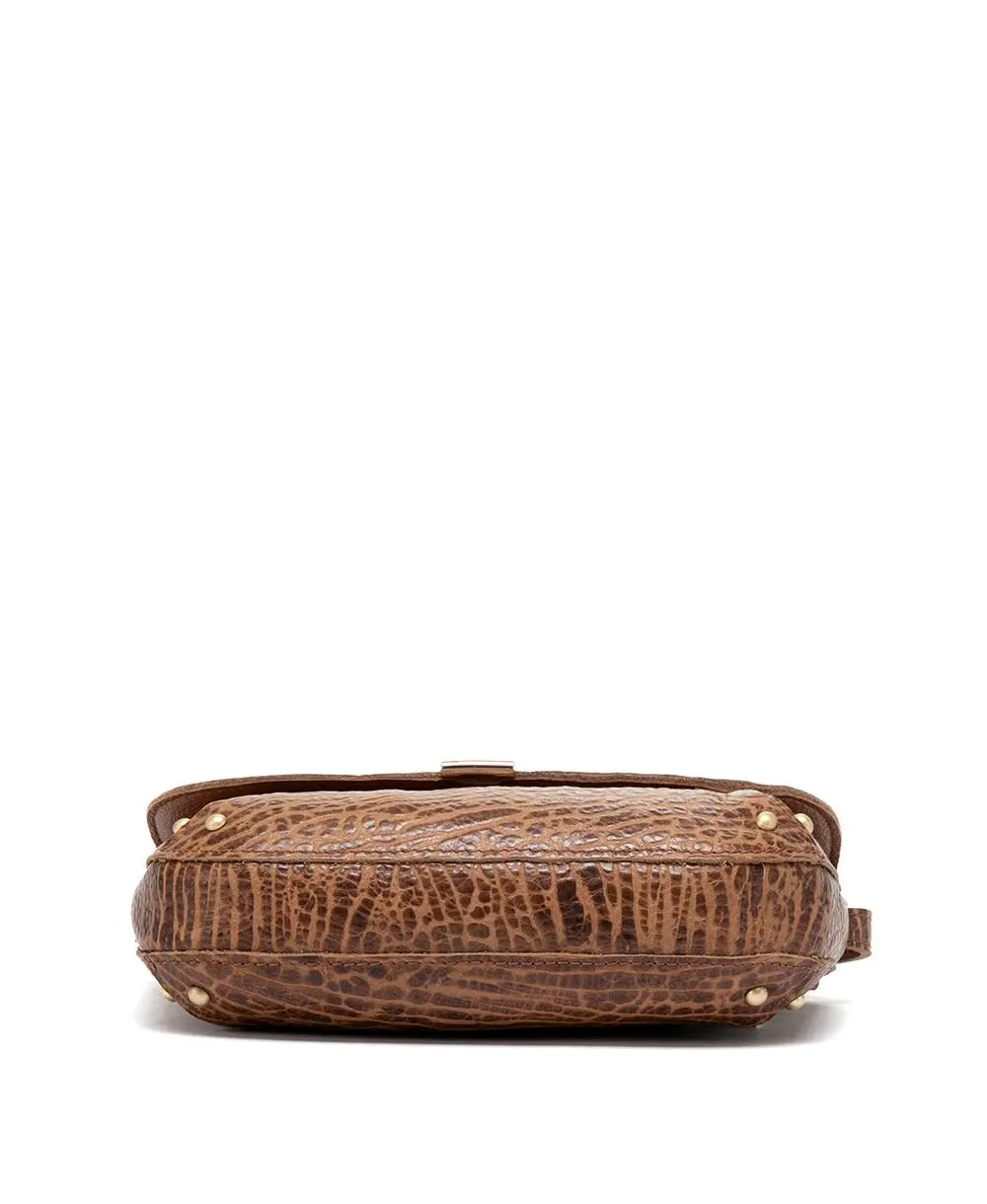 תיק מיני לנשים מעור קרוקו חום של נטע שדה.