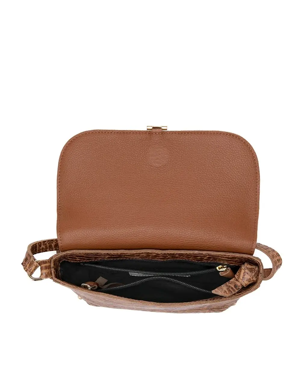 תיק מיני לנשים מעור חום קרוקו דגם "תום" מבית נטע שדה