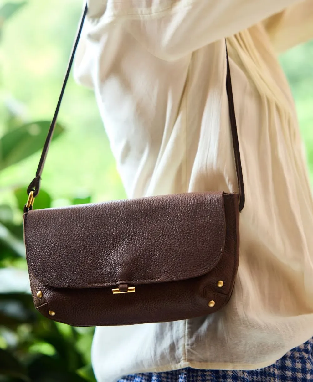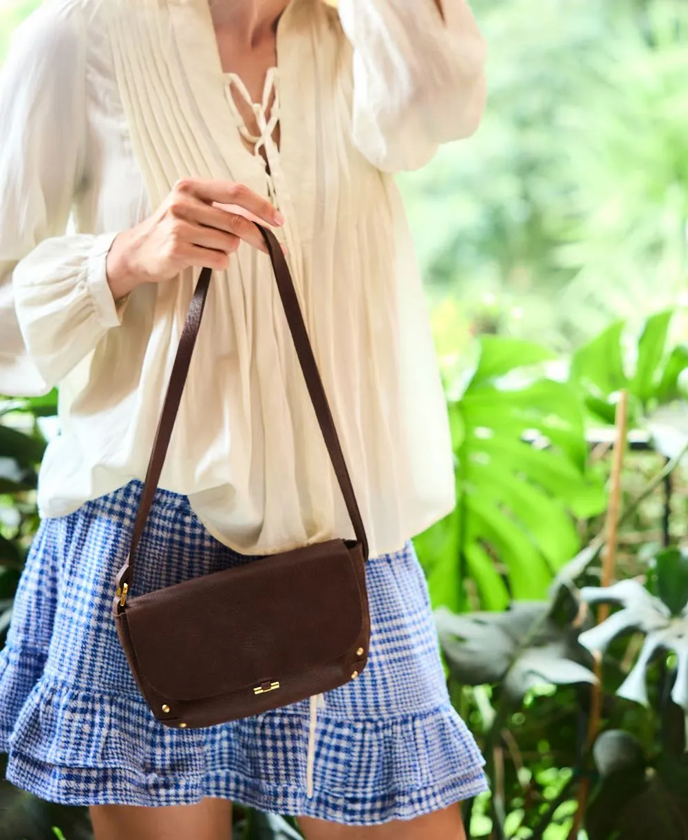 תיק מיני לנשים מעור חום כהה סוואנה – דגם "תום" מבית נטע שדה