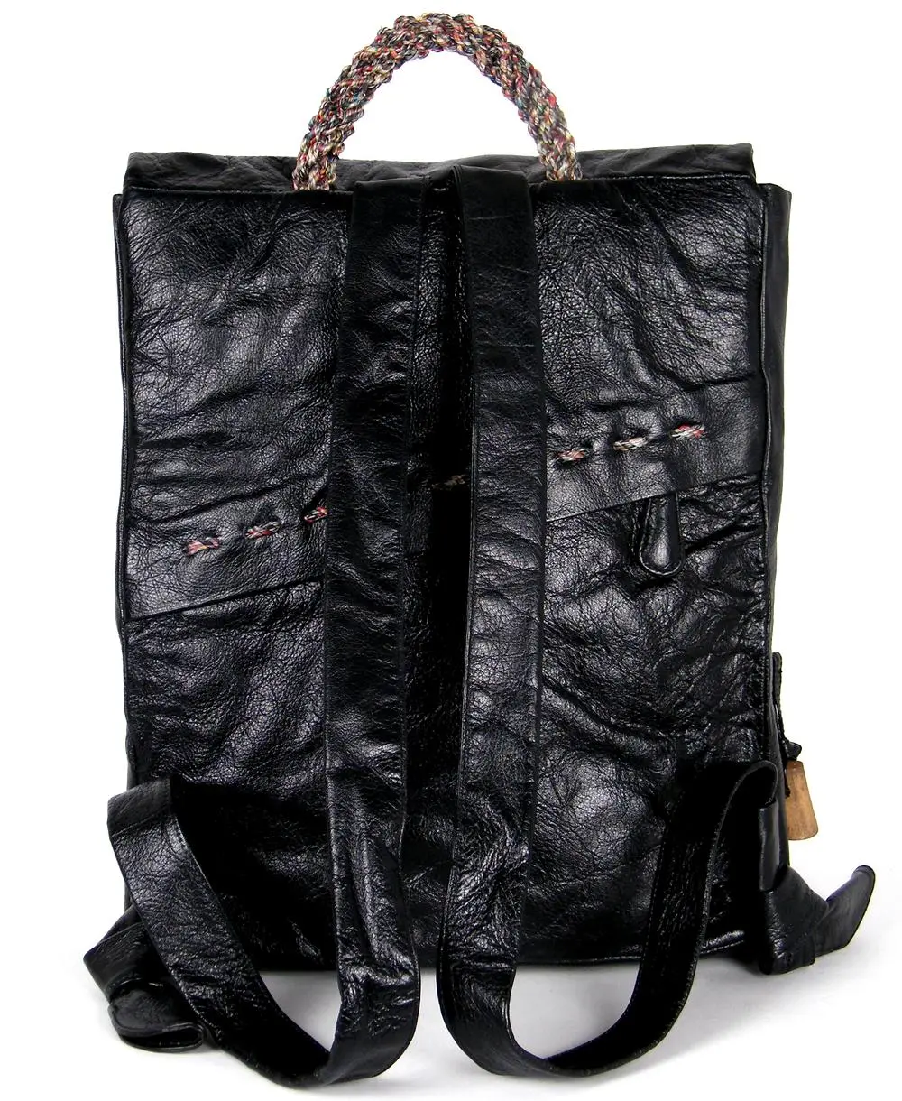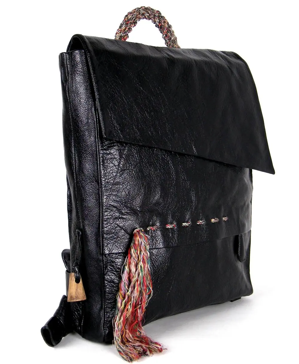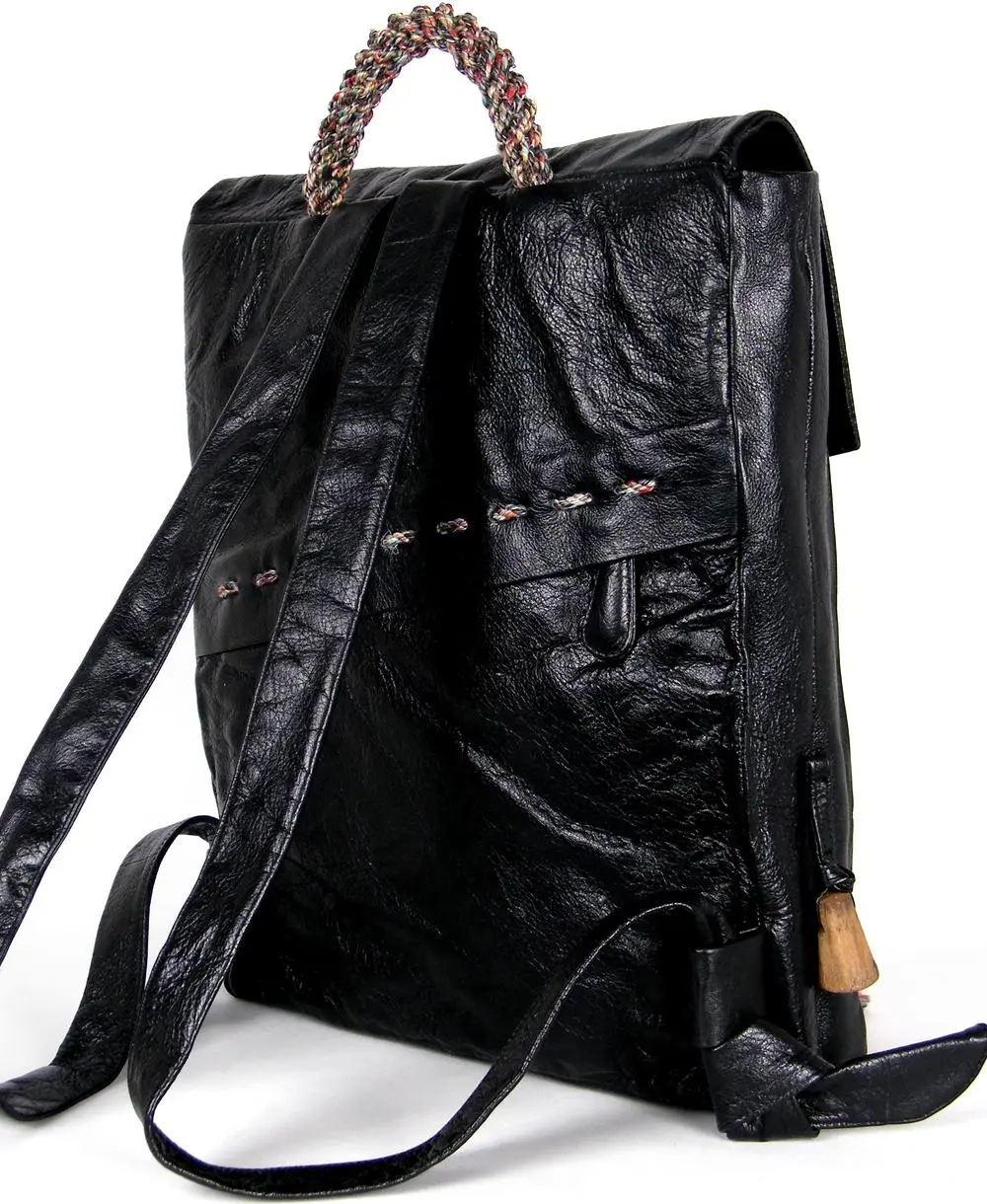 תיק גב למחשב נייד מעור נאפה שחור ONE ONE FIVE