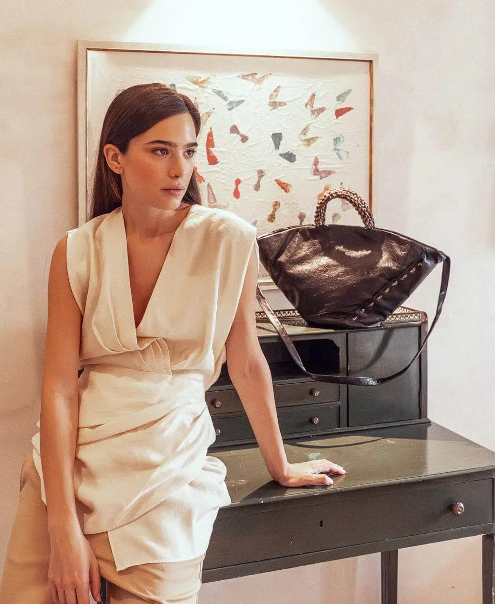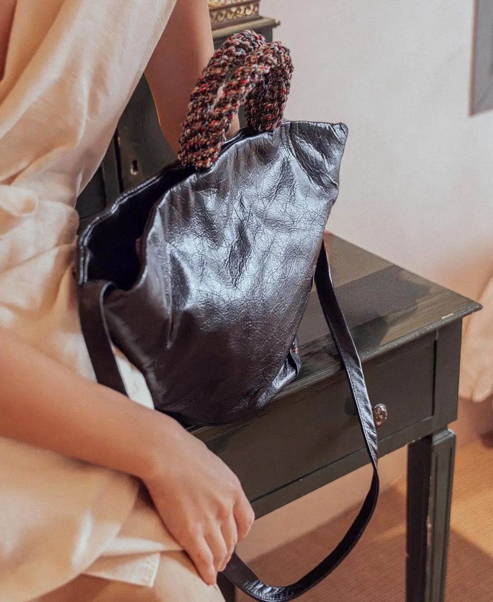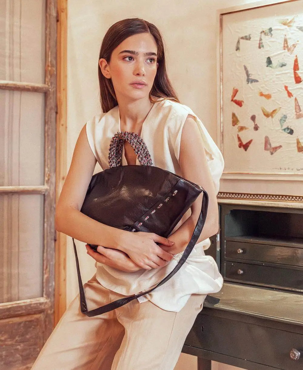 תיק צד לנשים מעצבת אורית לבנת דגם Tapan בשחור
