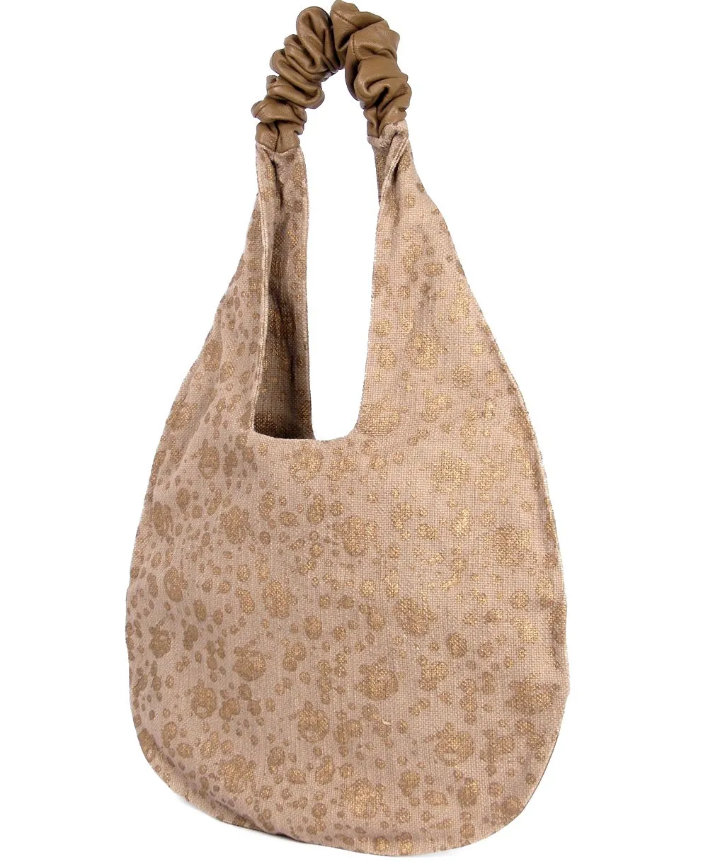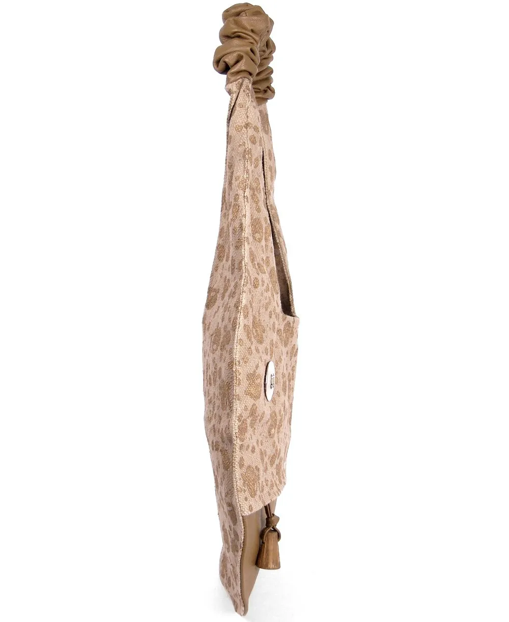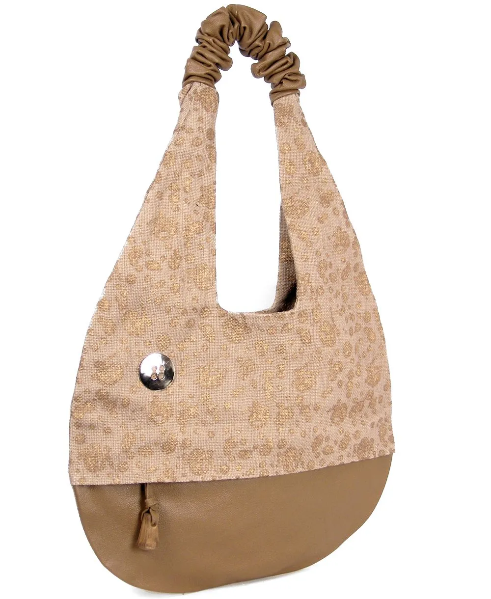 ידית הנשיאה המקומטת מעניקה לתיק מראה אומנותי ייחודי, וכפתור מתכתי עגול מוסיף נגיעה מודרנית.