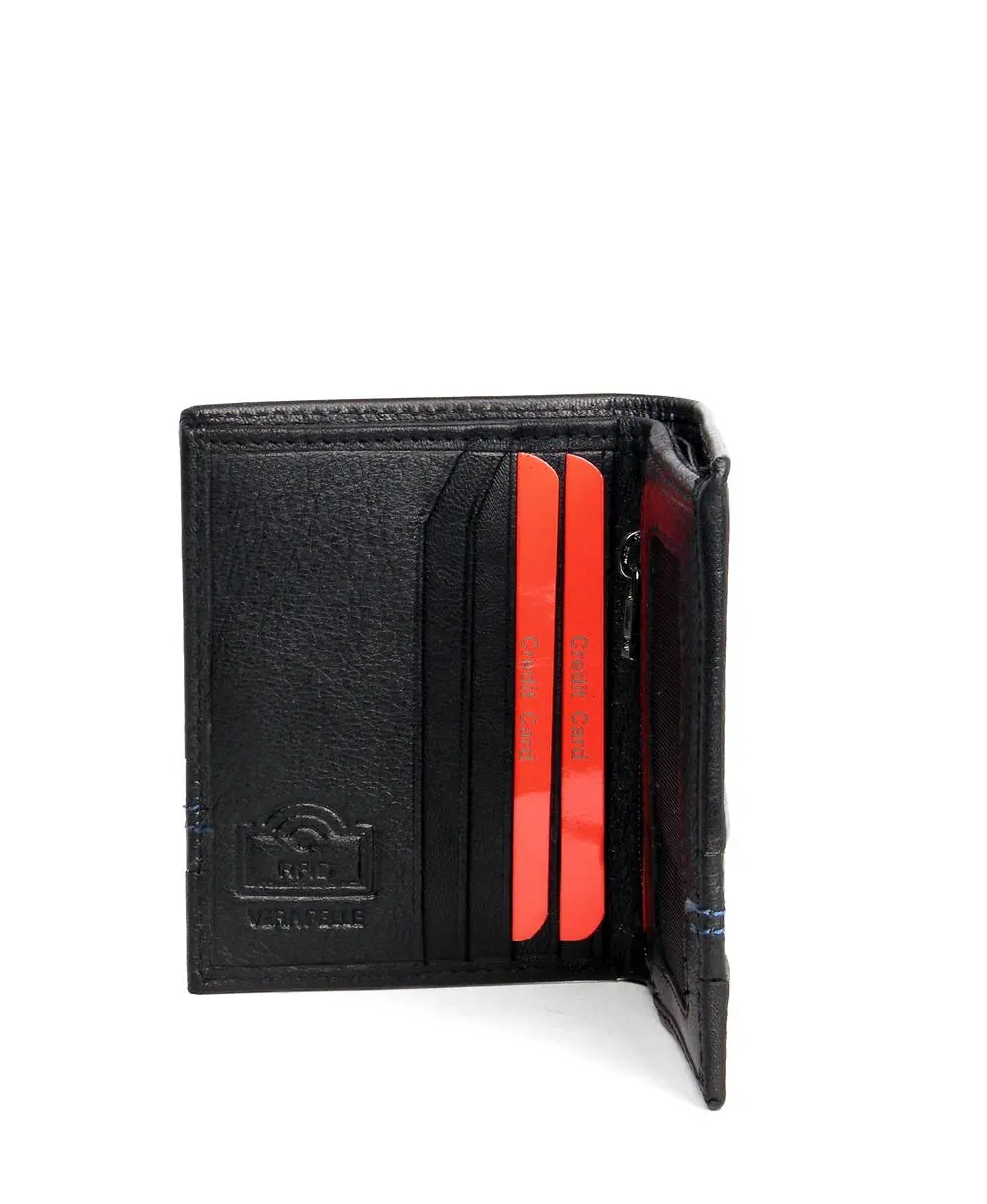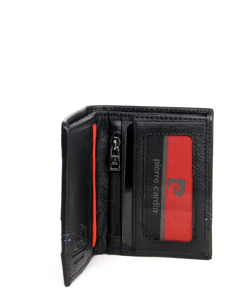 ארנק לגבר Pierre Cardin בצבע שחור עם תפר כחול,