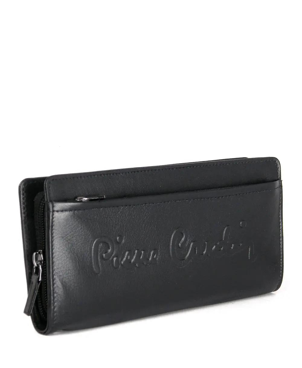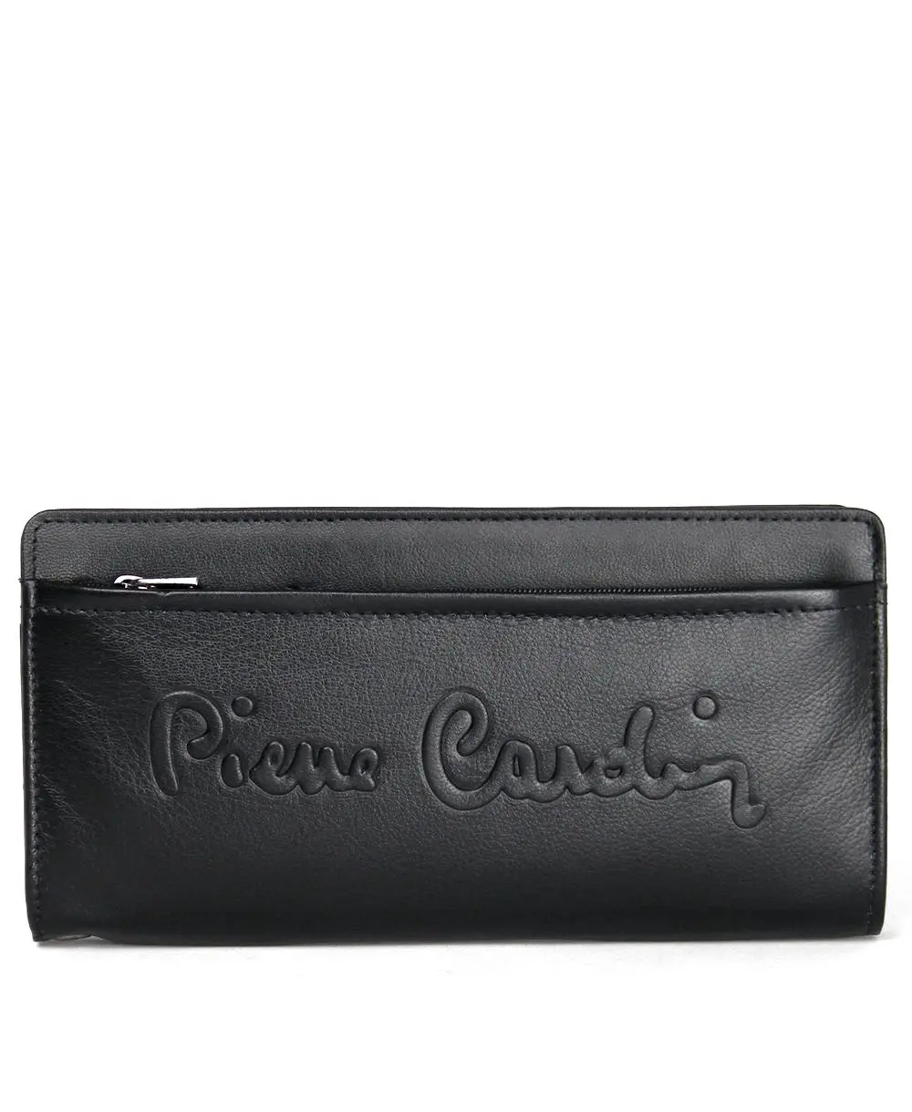 ארנק קלאץ לנשים לוגו עור שחור נאפה Pierre Cardin