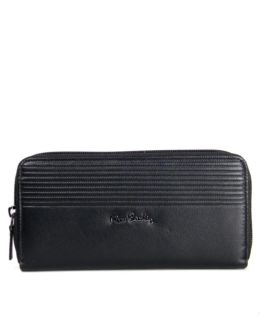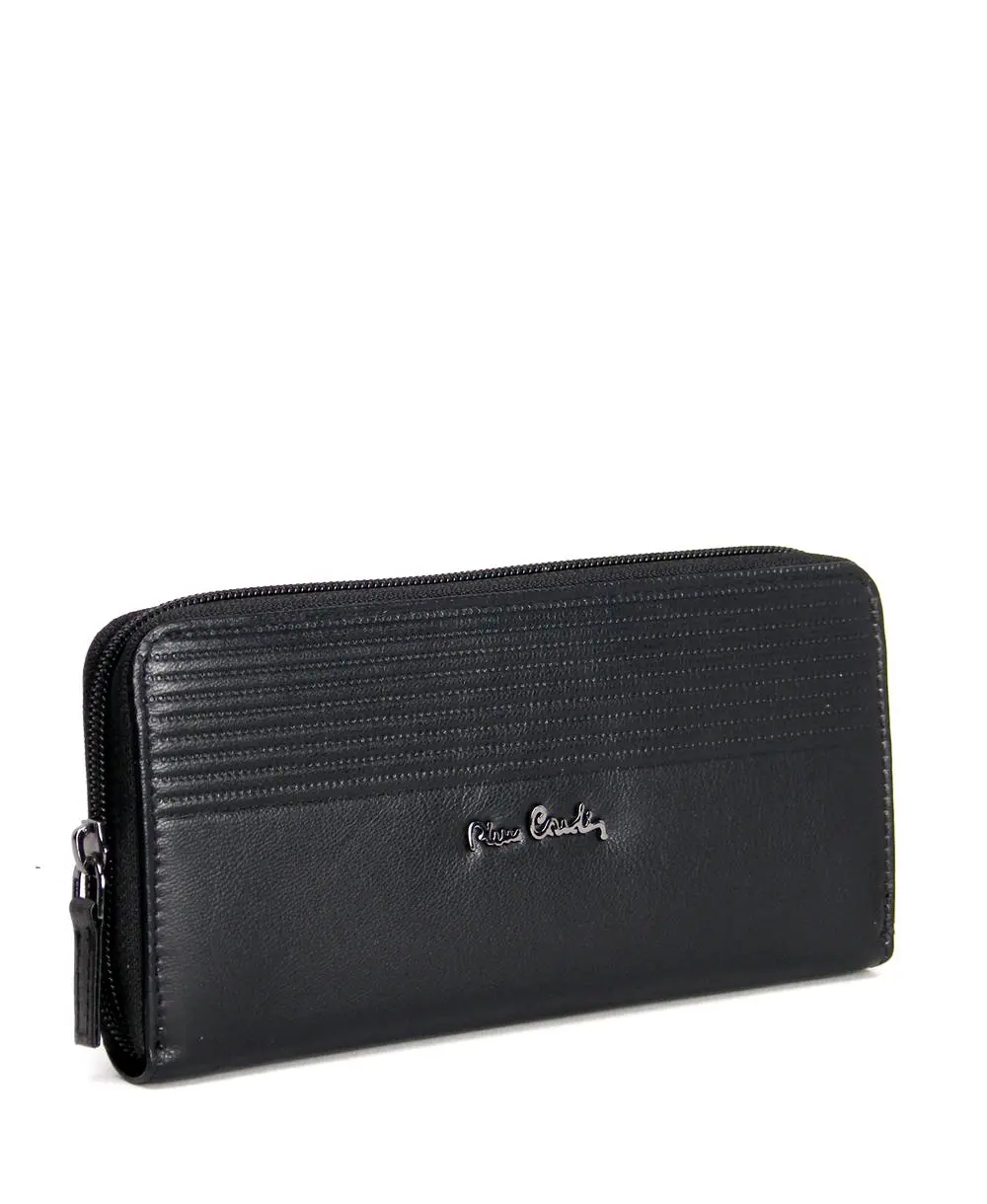 ארנק קלאץ פסים לנשים עור נאפה שחור Pierre Cardin