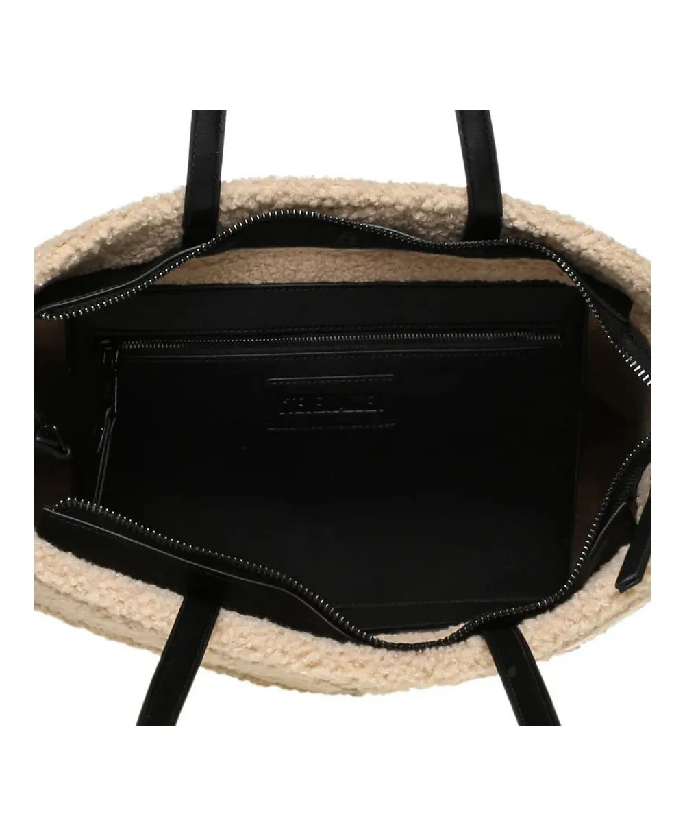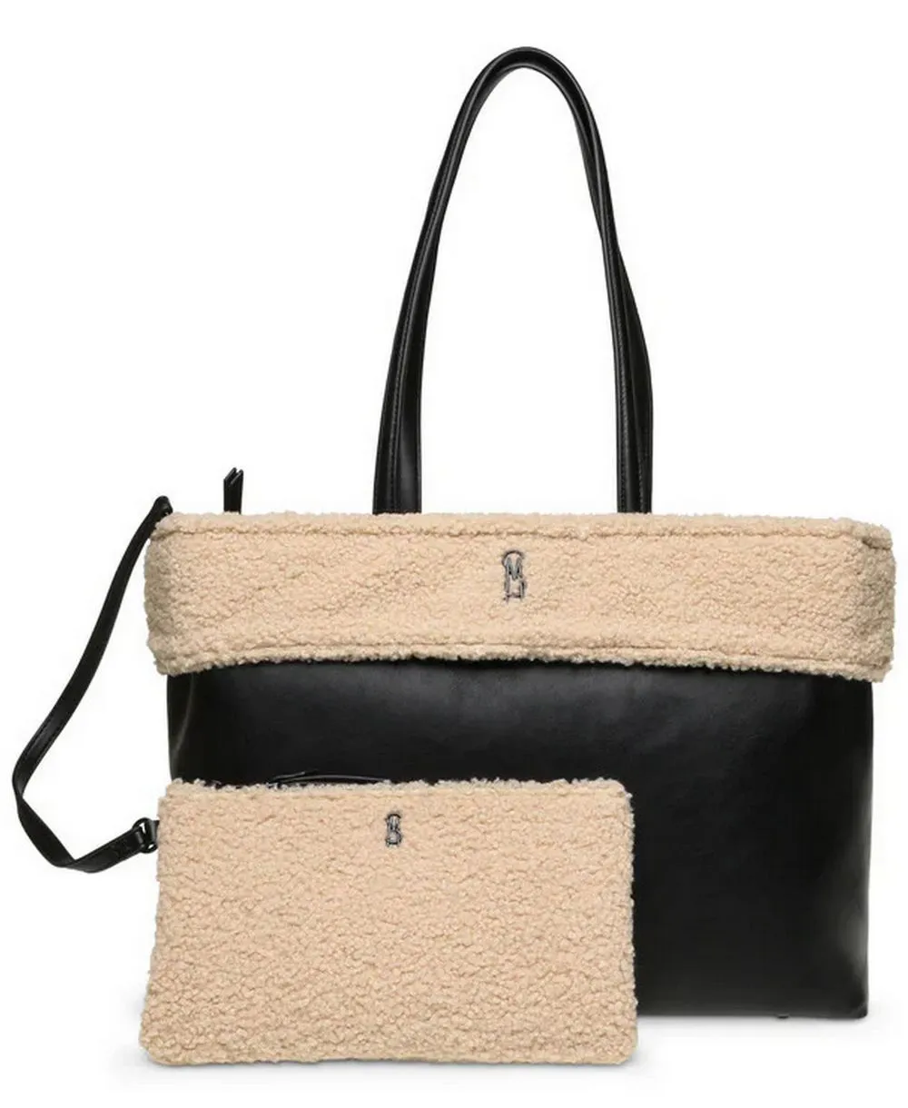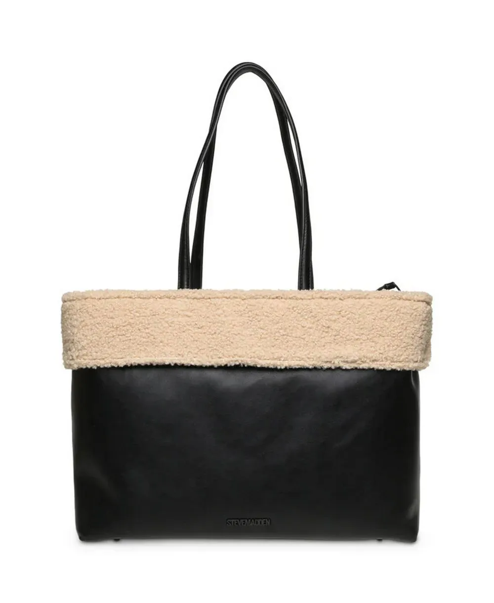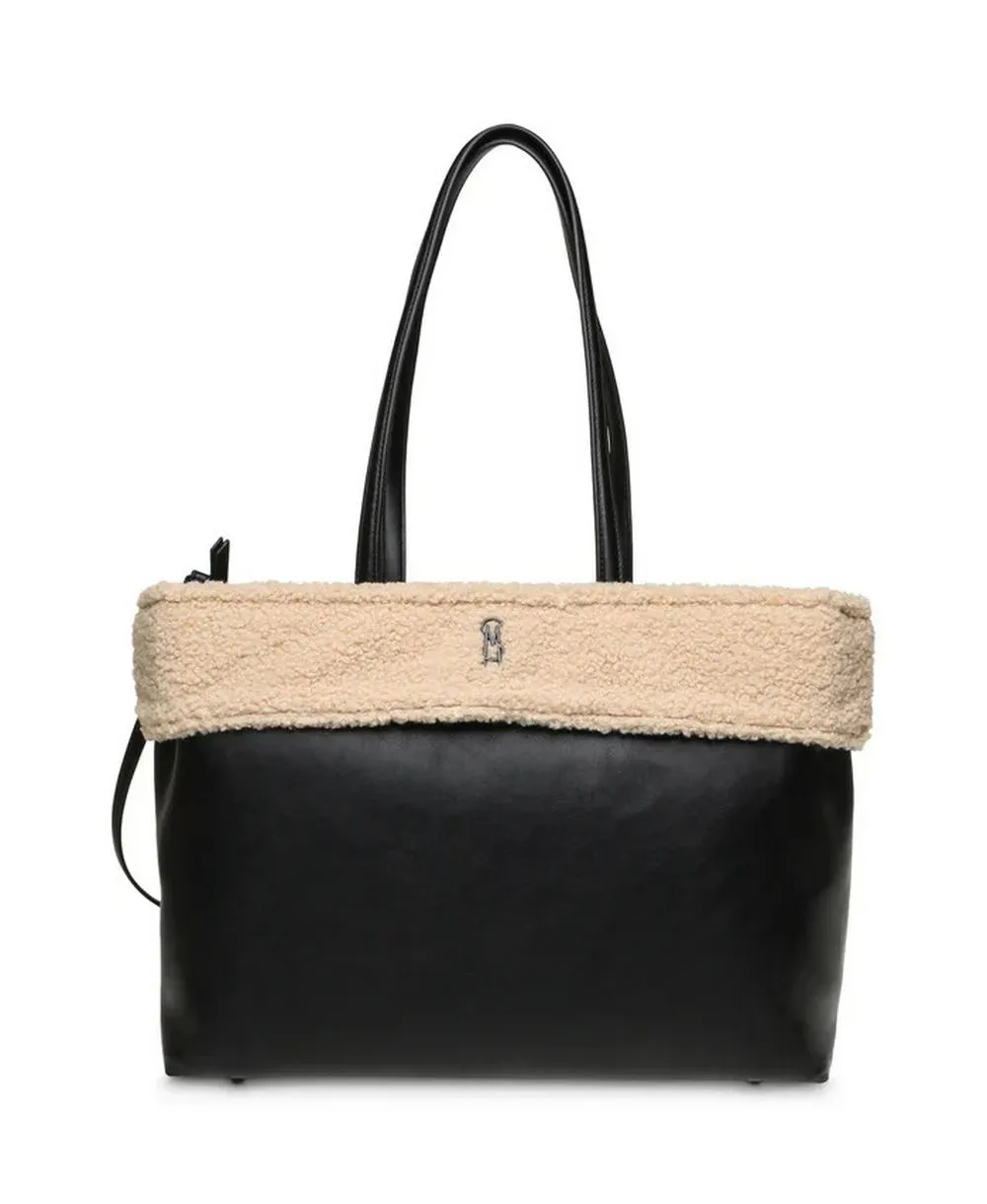 תיק צד לנשים שחור עם פרווה בהירה סטיב מאדן