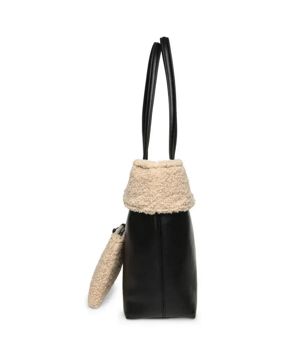 תיק צד לנשים בצבע שחור עם שילוב פרווה בהירה מבית Steve Madden,