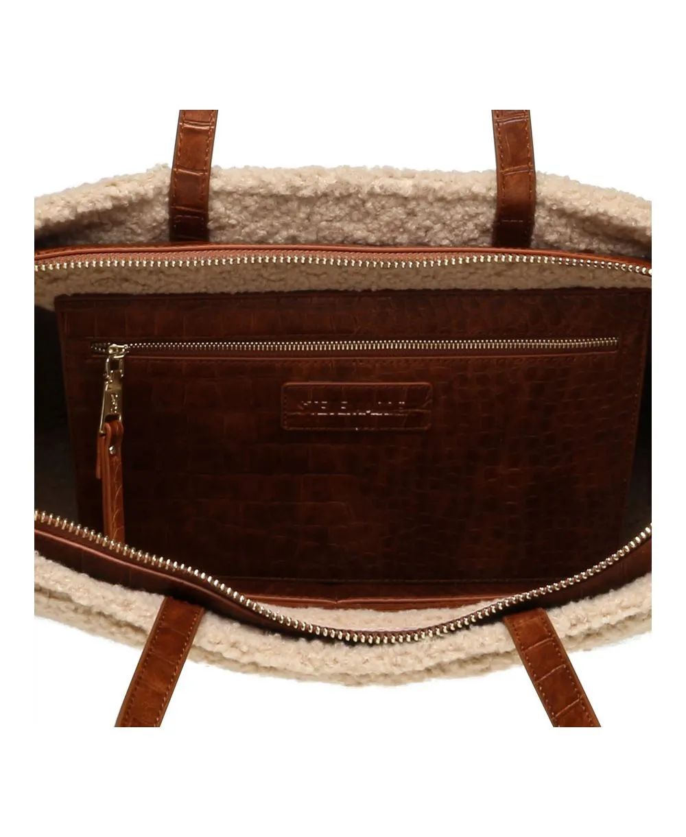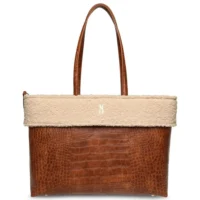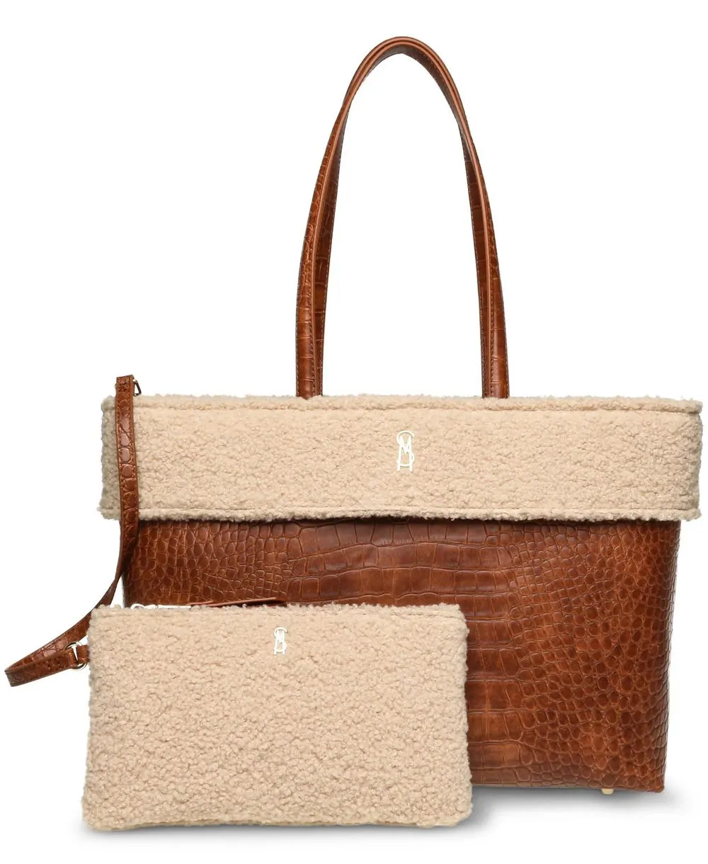 תיק צד לנשים חום קרוקו עם פרווה בהירה סטיב מאדן