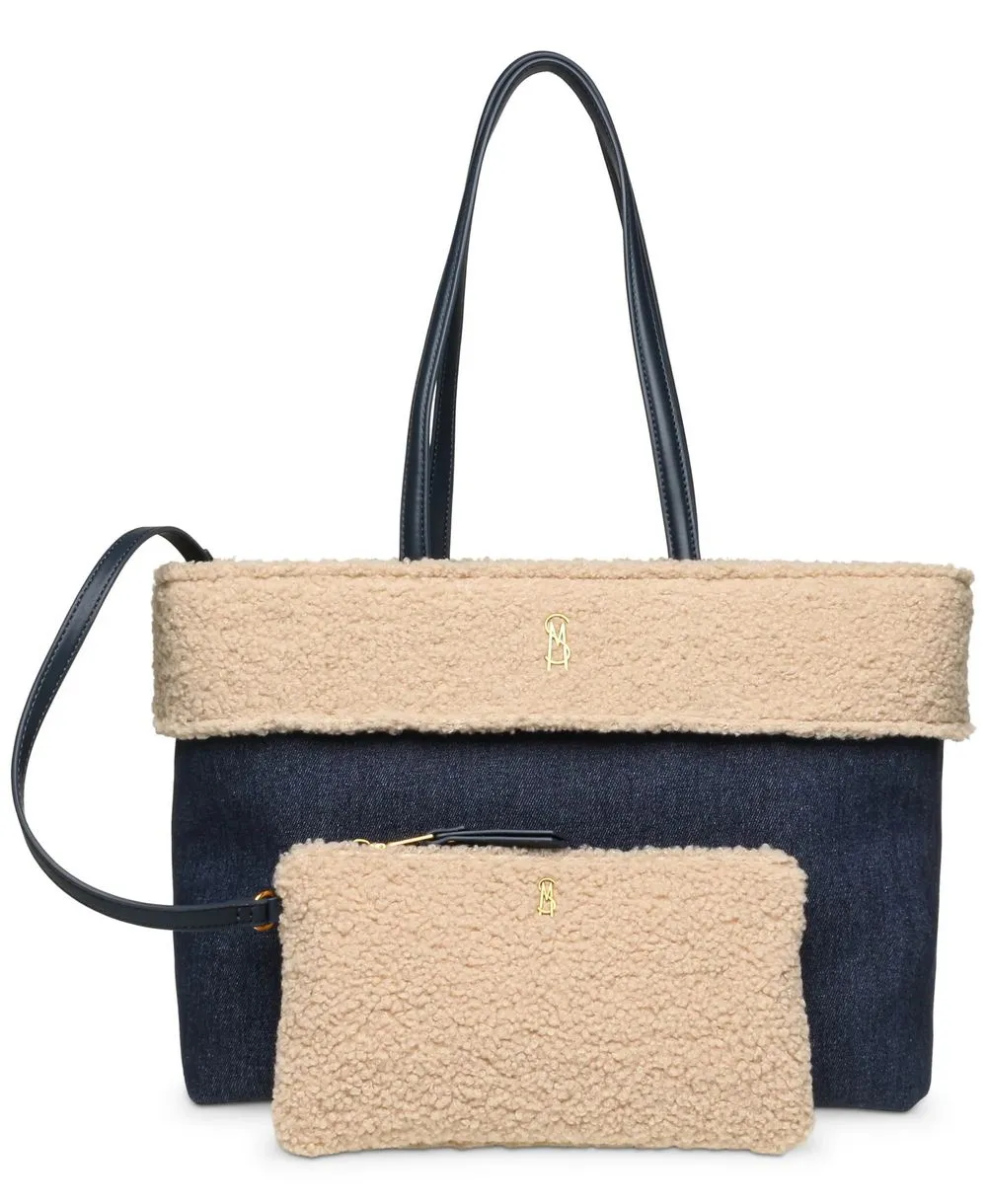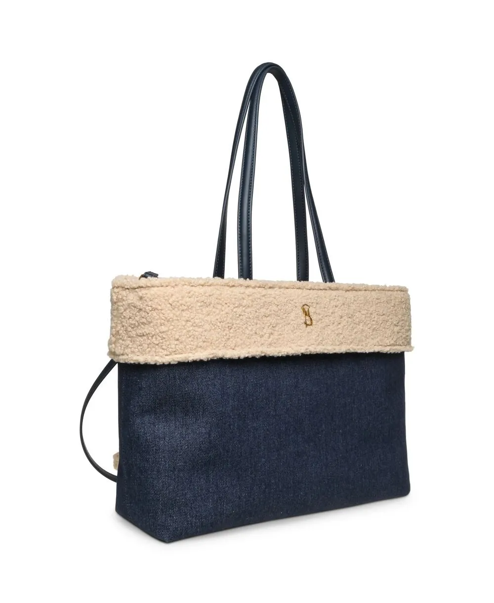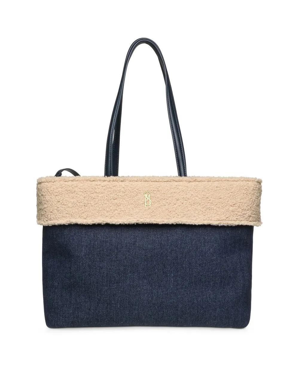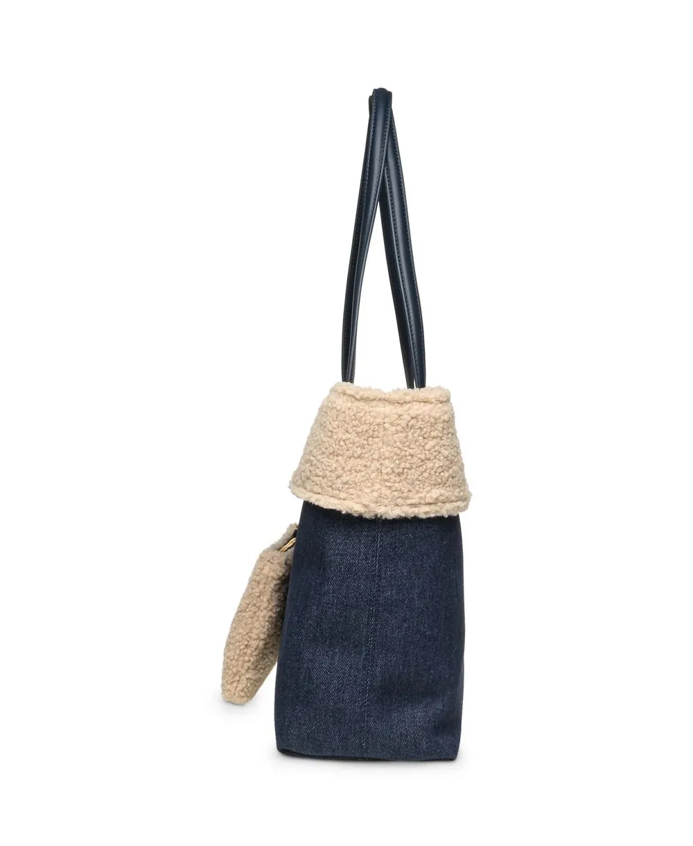 תיק צד לנשים בצבע כחול ג'ינס עם שילוב פרווה בהירה Steve Madden,